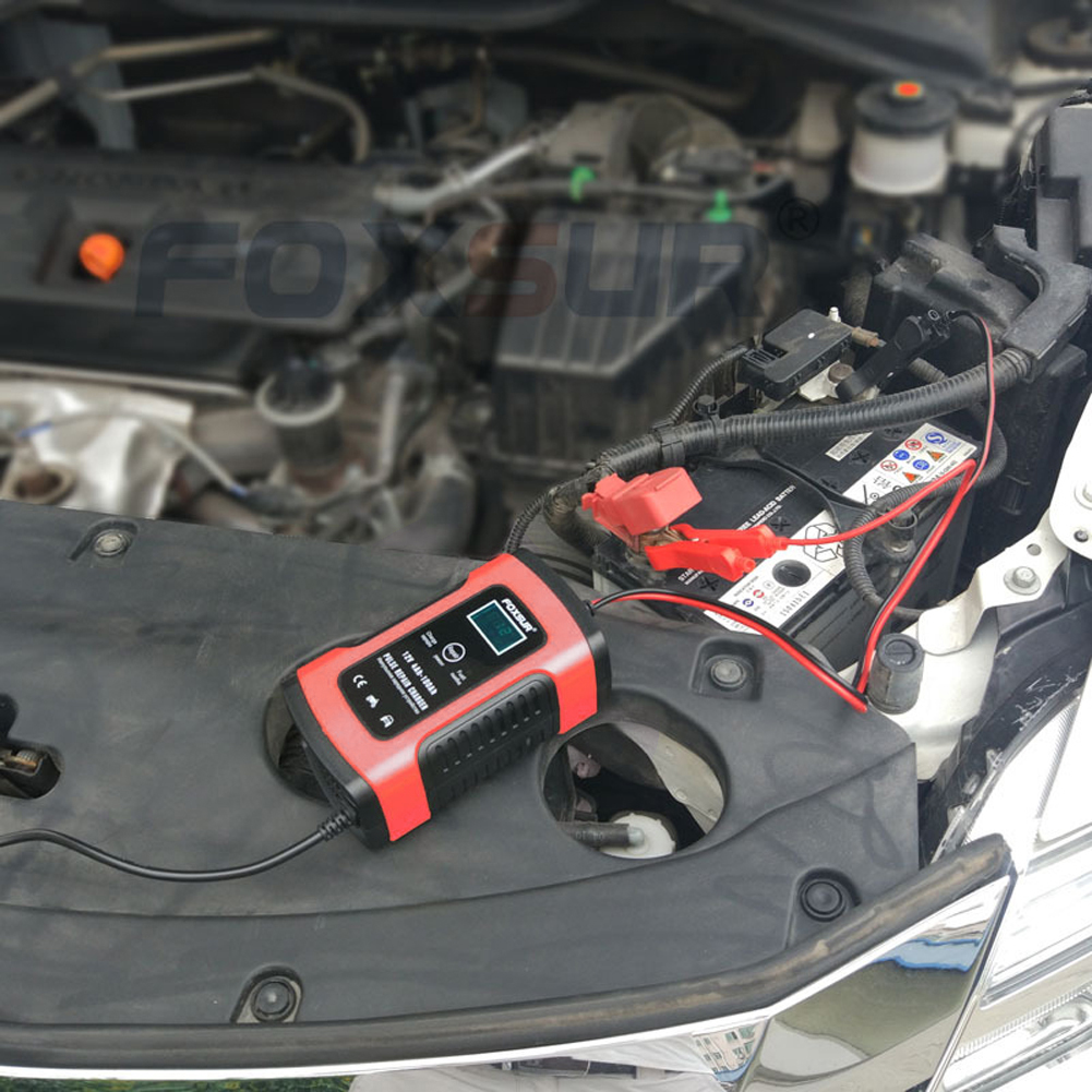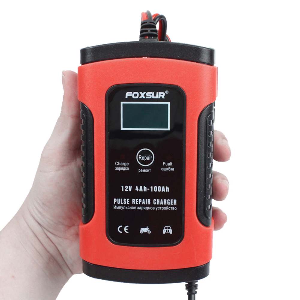 Automatic Battery Charger with LCD Display Battery Booster Portable 12V 5A Orange for Motorcycle SUV for Emergency Starting