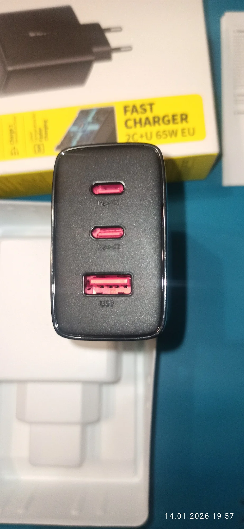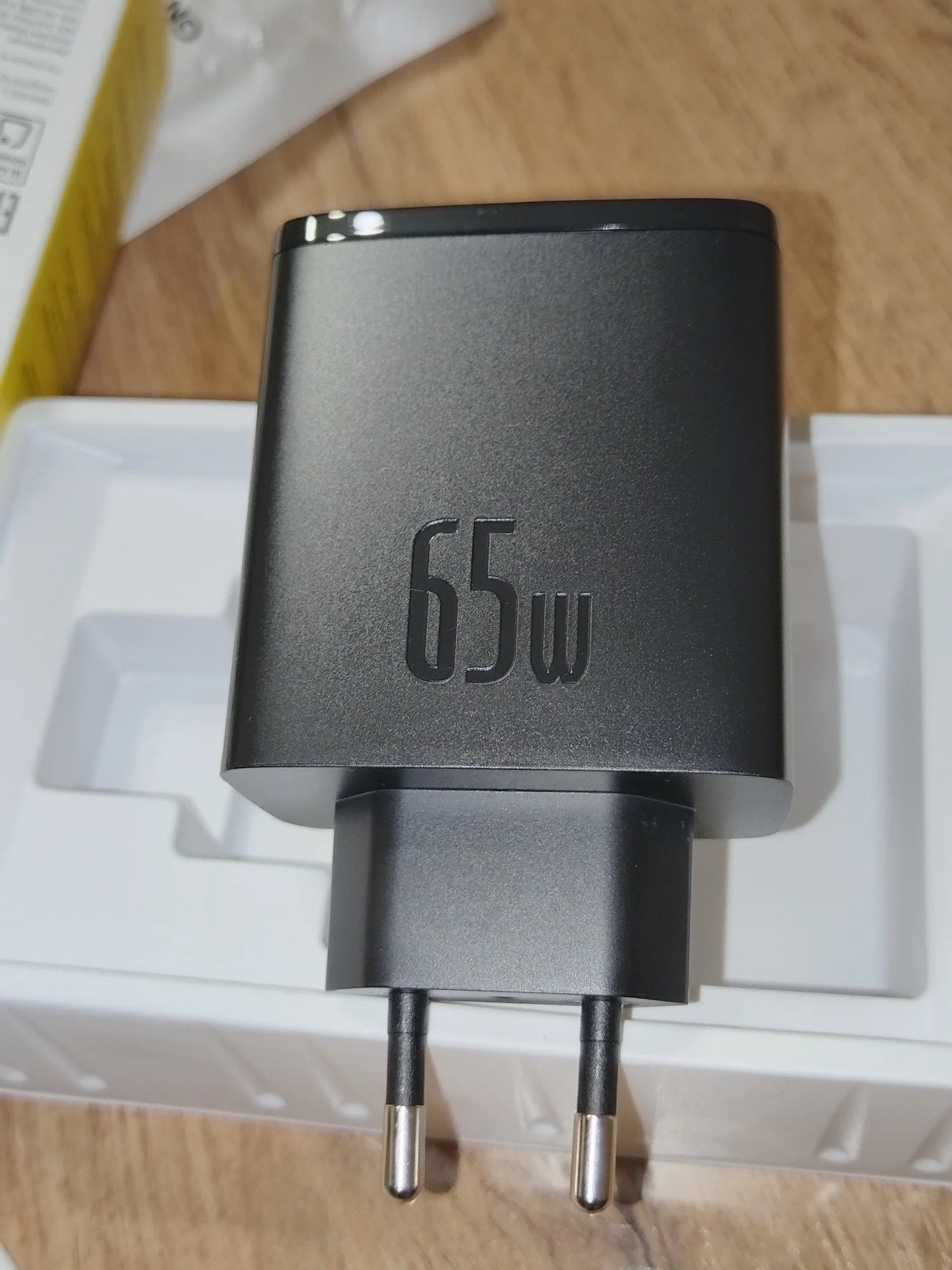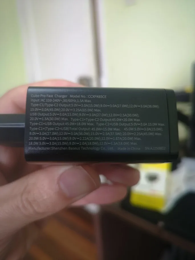 The Lenovo laptop is charging, but when charging the Samsung phone from the first port, it says "super fast charging". Please note that 65w is only one port and only when no devices are connected to the other ports. Also, the charger indicates what other combinations of parallel charging for multiple devices are possible. and it also weighs quite a bit. The packaging arrived heavily dented, but the adapter is intact and in good condition. I'm planning to get another one like this.