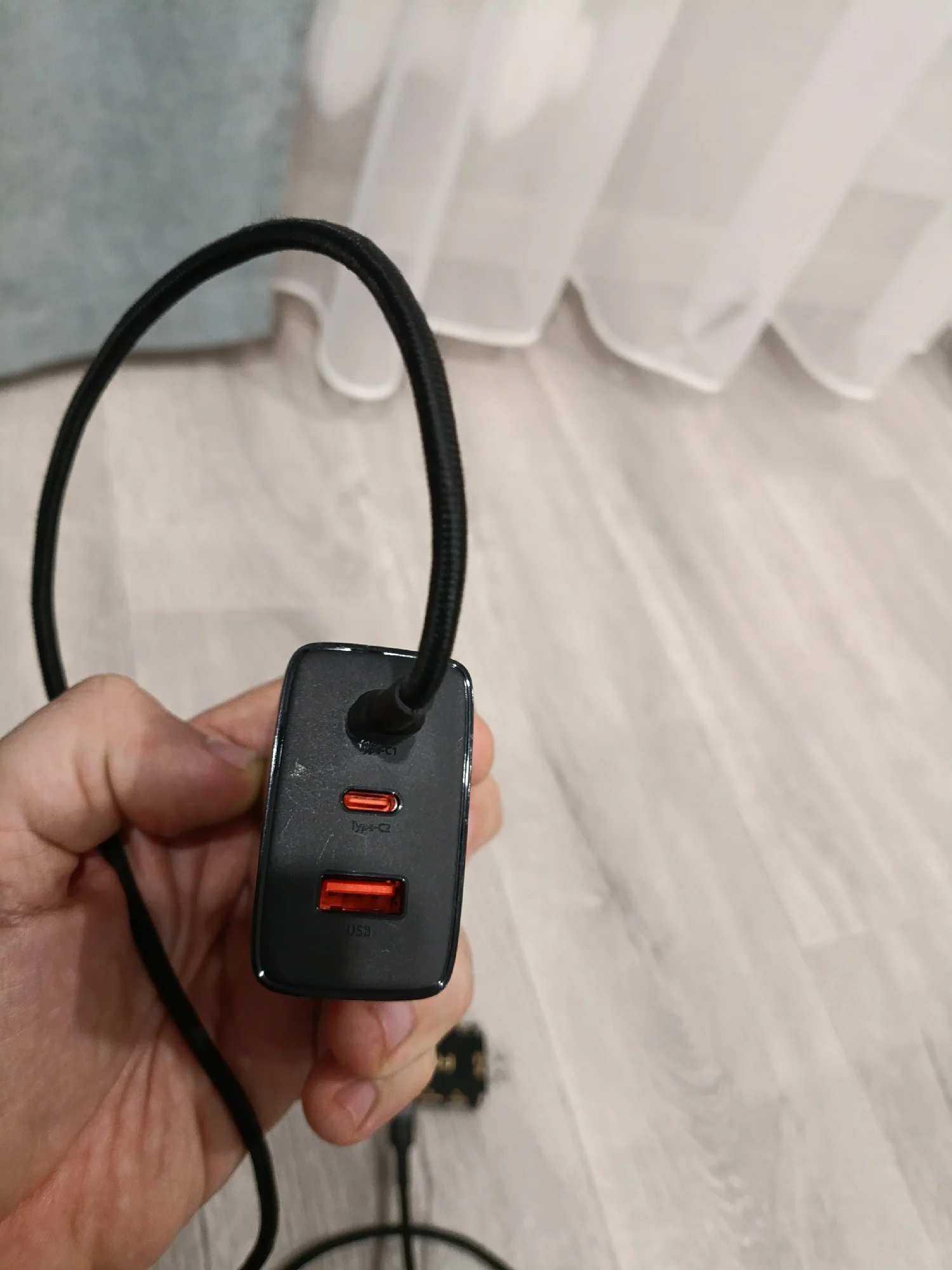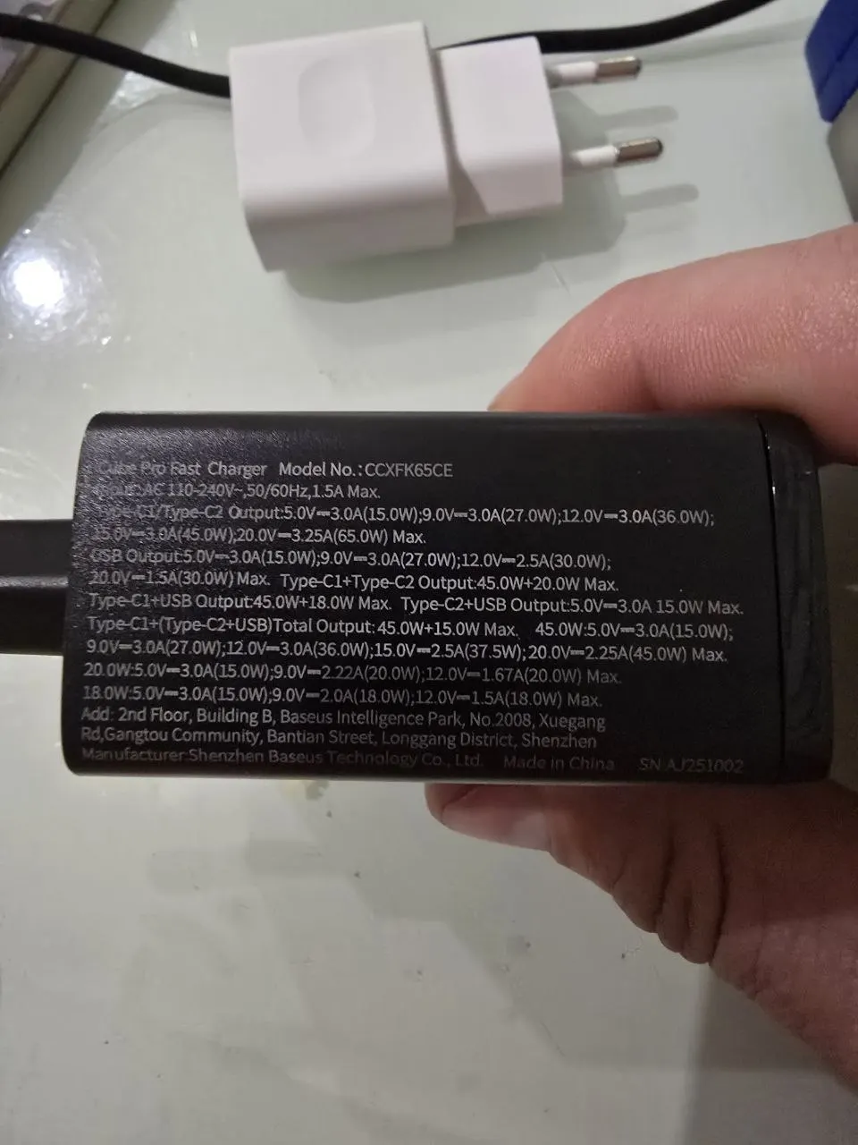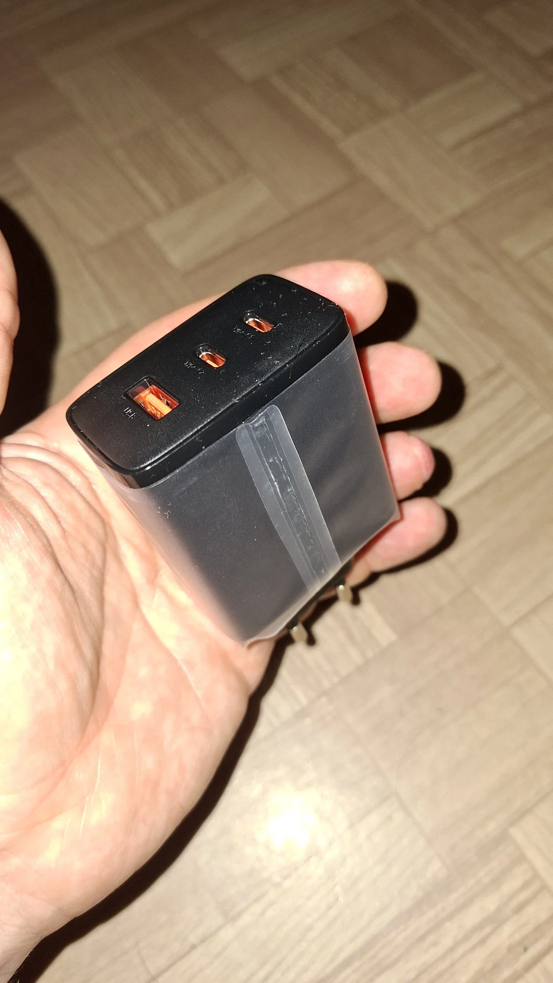 The Lenovo laptop is charging, but when charging the Samsung phone from the first port, it says "super fast charging". Please note that 65w is only one port and only when no devices are connected to the other ports. Also, the charger indicates what other combinations of parallel charging for multiple devices are possible. and it also weighs quite a bit. The packaging arrived heavily dented, but the adapter is intact and in good condition. I'm planning to get another one like this.