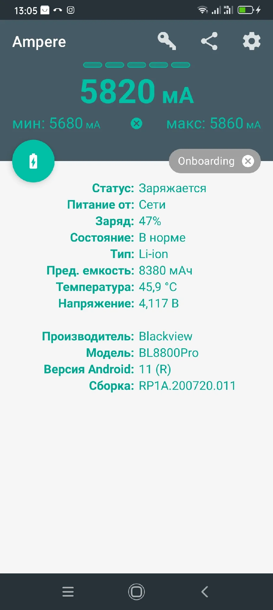 The charger is substantial, with several ports and power to match. I checked the amperage in the app (I'm attaching a screenshot) the current through Type-C is 5800mA, an excellent result. The original charger from the smartphone charges almost the same, this one is twice as powerful, but the smartphone's capabilities are likely limited in reception. I didn't check several devices at the same time; I didn't have time or desire to do so. Let's see how long it lasts; so far only positive emotions.