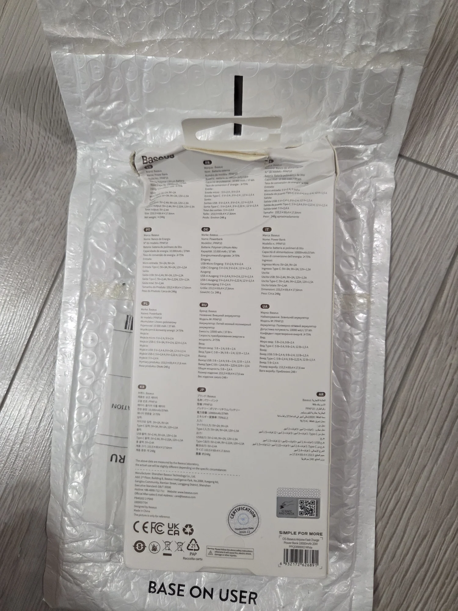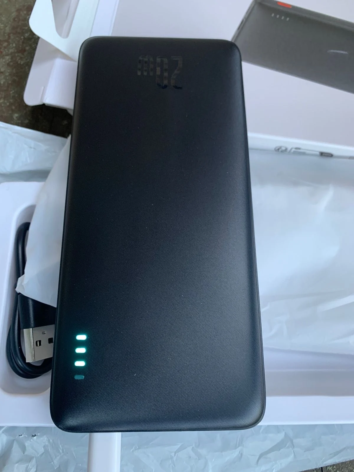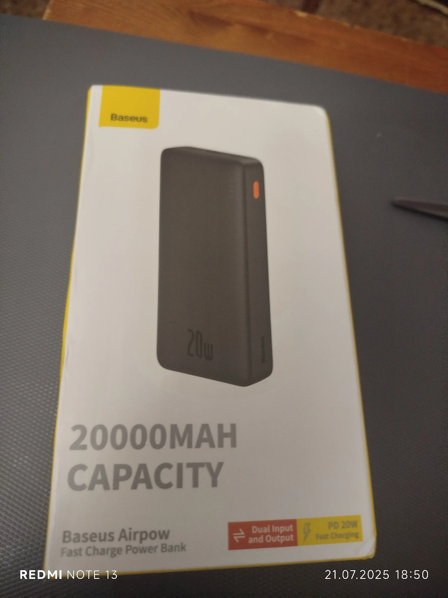The order arrived at lightning speed. The packaging was dented on the right side, resulting in a tear in the packaging. Not critical, nothing inside was damaged. The charge is about 50%, charging normally, discharging properly. Liked: 1) Delivery speed. 2) The device itself is pleasant to the touch and doesn't look cheap. 3)The price on 11.11 sale is very attractive. What I didn't like: 1) Damaged packaging. 2) Fingerprints from greasy fingers on the top console of the bank, this shouldn't happen with a new product, but it does. Both of these facts did not affect the bank's functionality, but ... as they say, a lingering feeling remained.