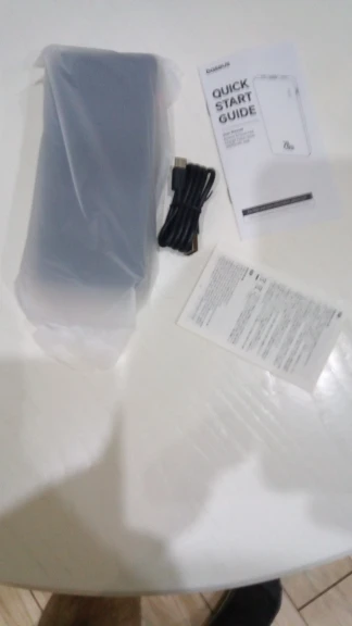 Came in completely damaged box (the product is fine). There is usb-c wire and instruction in several languages provided (and stickers as usual :) ) it works. The capacity was not measured yet. Delivering is not super fast but also not too long either.