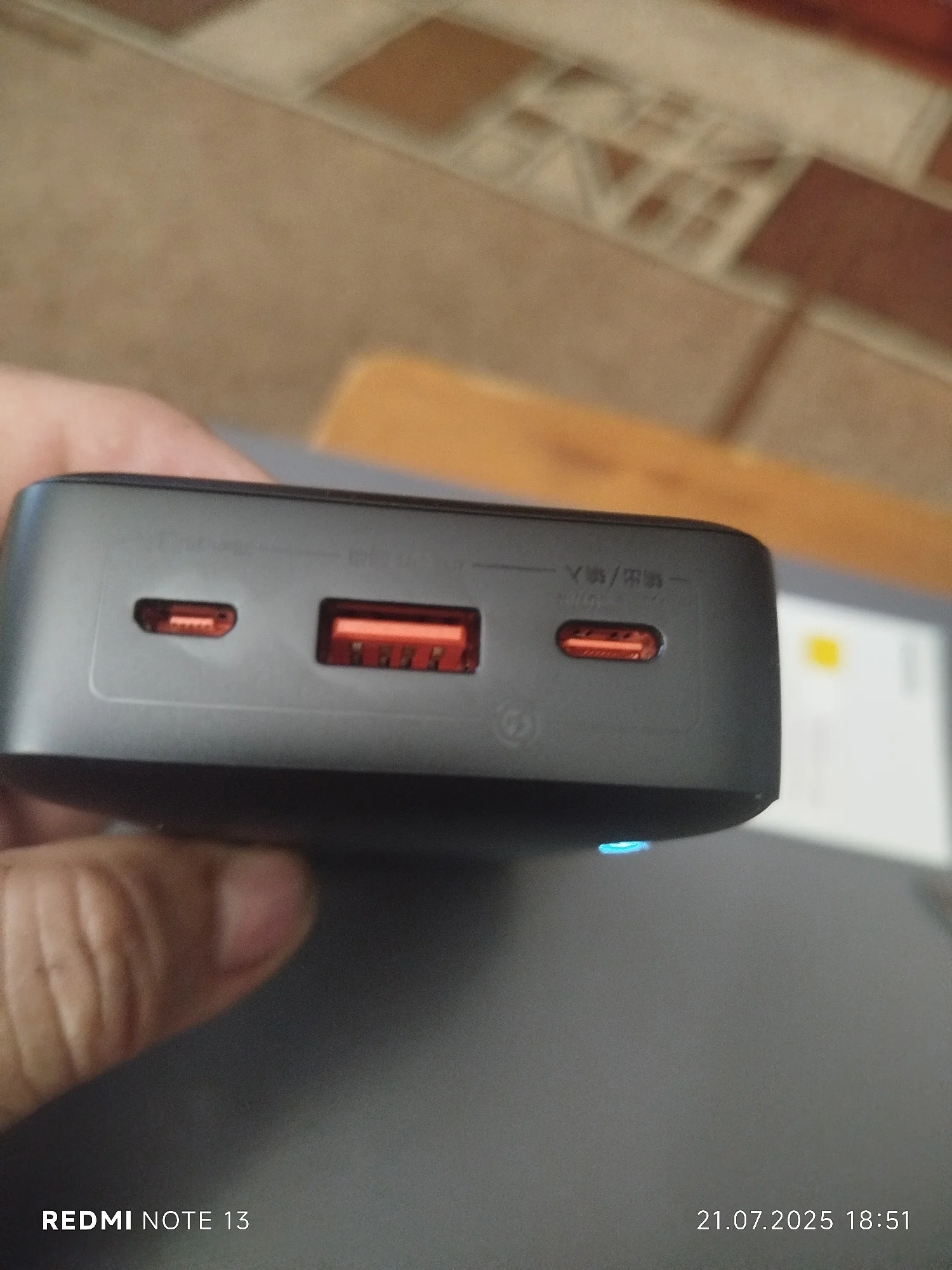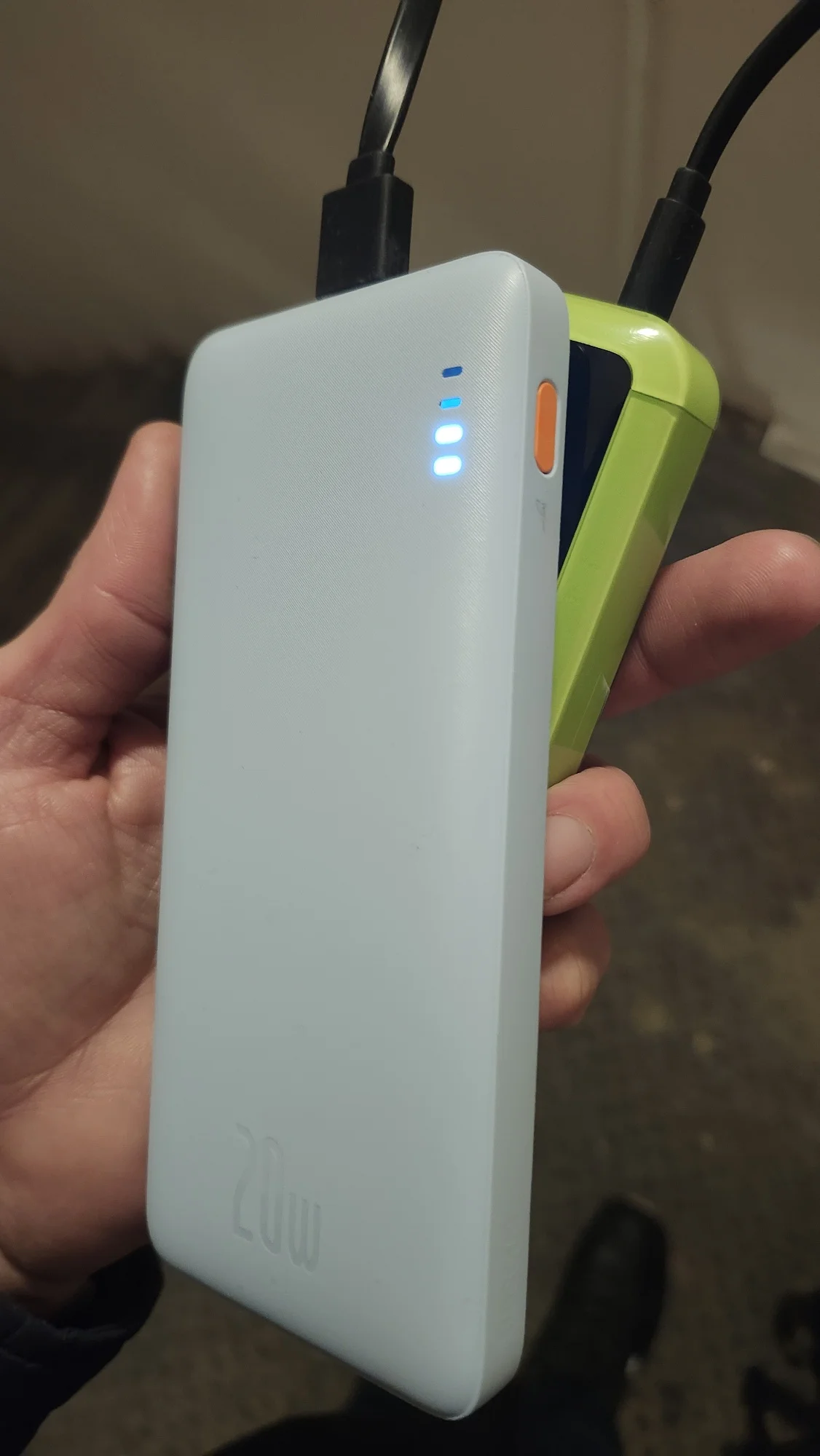 Received very quickly, within 2 weeks, this is rare. The power bank itself is heavy, the body is plastic but durable. It showed fast charging on the phone. Everything looks clear, without squeaks or looseness, well assembled.