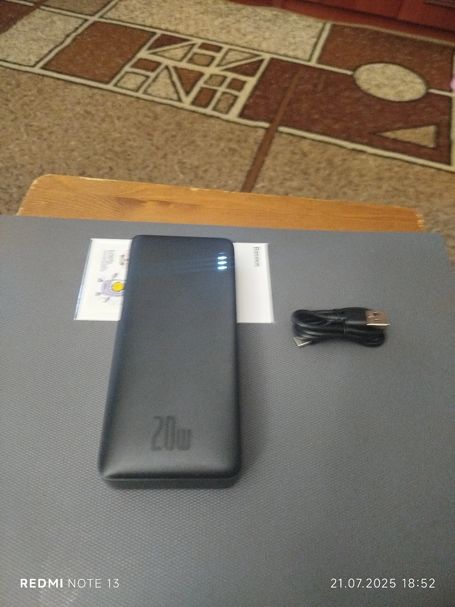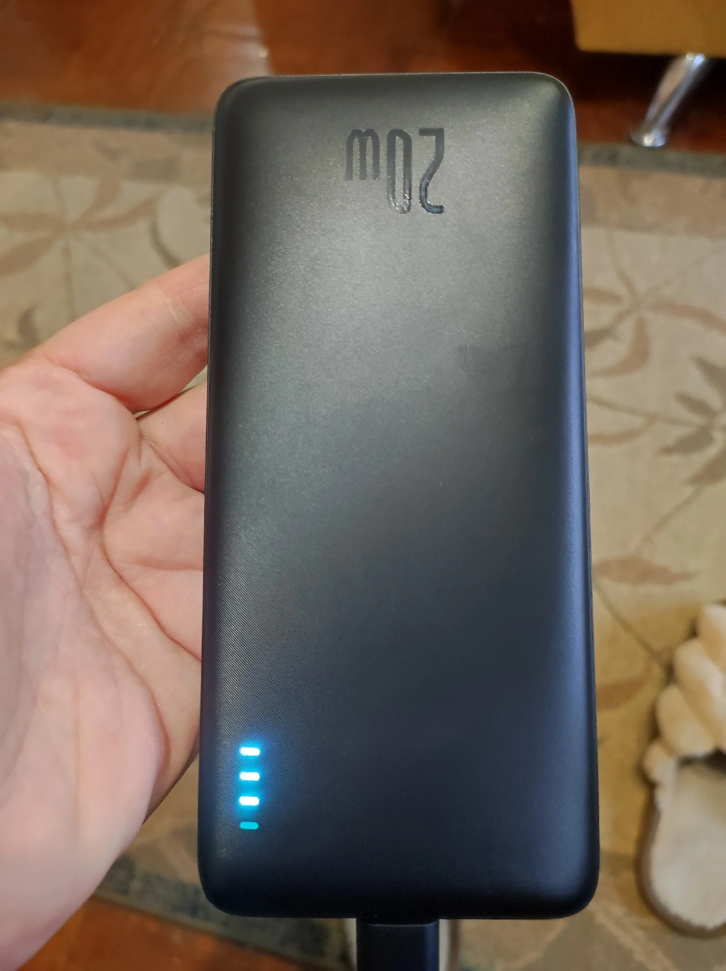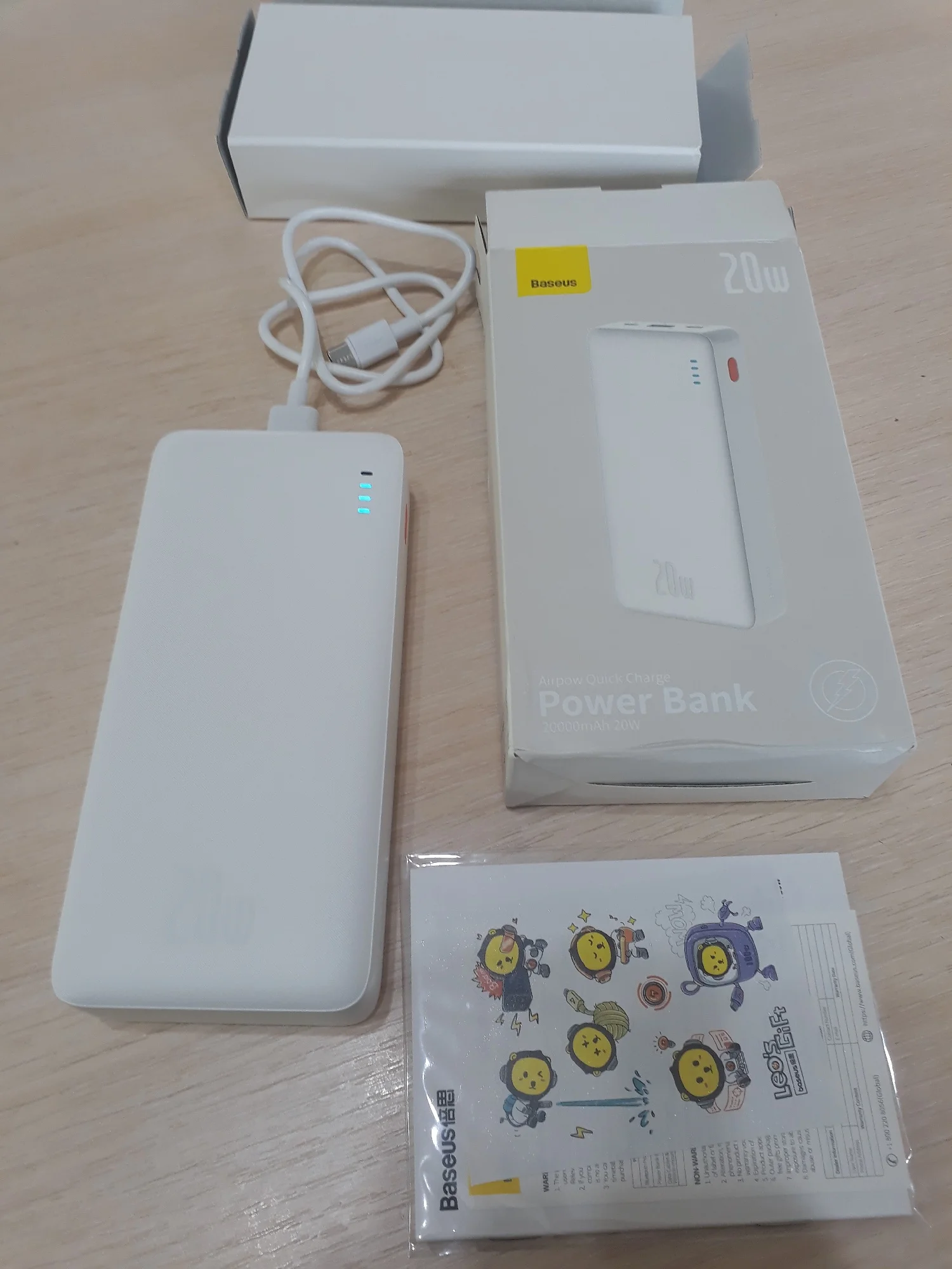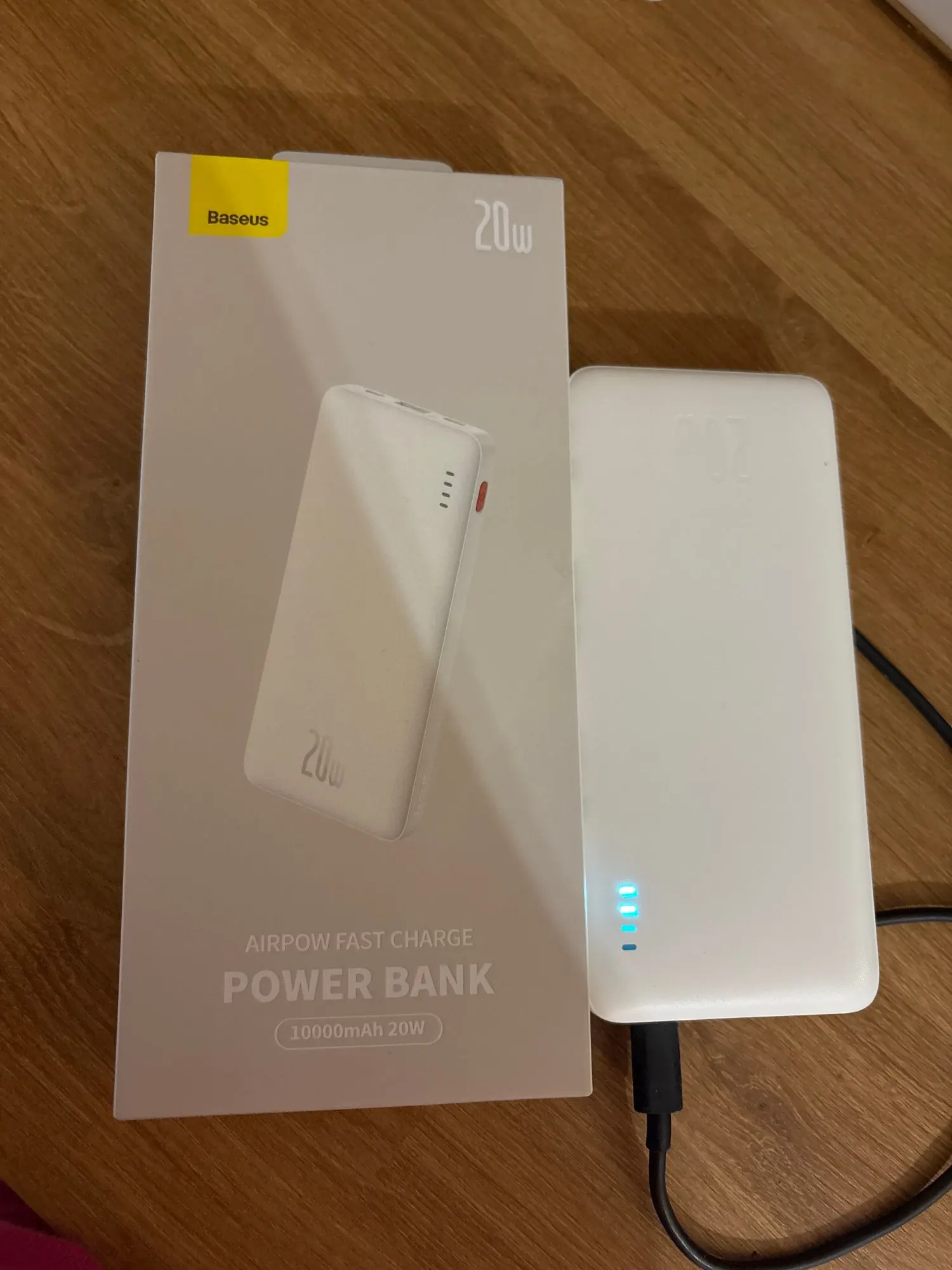 Excellent power bank, I've been using it for several months. Arrived partially charged, at 3 out of 4 bars. Supports fast charging of a smartphone. Baseus always makes me happy, thank you!