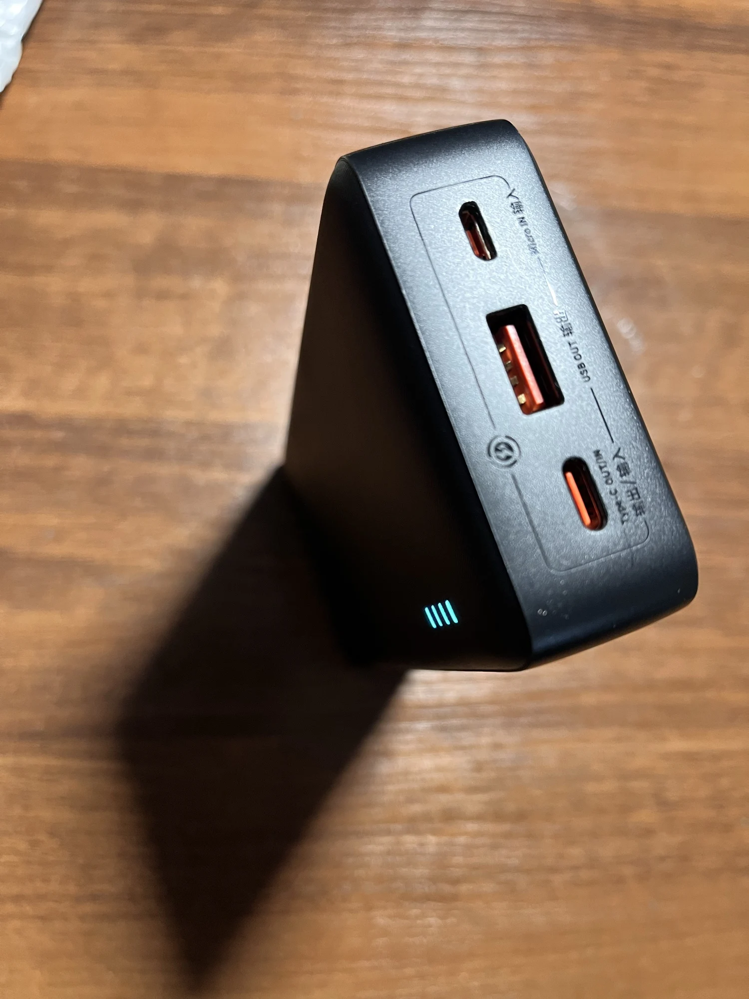 I don't know what's wrong with the capacity, but it absorbs quickly. 30 watts input and about 20 watts output. There is no more powerful device. The charging indicator is good. The body is sturdy. It's a bit heavy.
