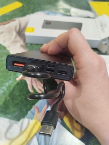 Excellent power bank. With remaining charge indication. Short USB-C charging cable included. For those who write about insufficient capacity - in any "booklet" about power banks it is written that the capacity usually amounts to 60-70 percent of what is indicated in the technical description. That is. 6-7 A.h. this is the norm for 10000 m.Ah. Don't expect more. If it's not enough for you, buy for 20,000. Thanks to the seller! This manufacturer has long proven itself to be highly positive!