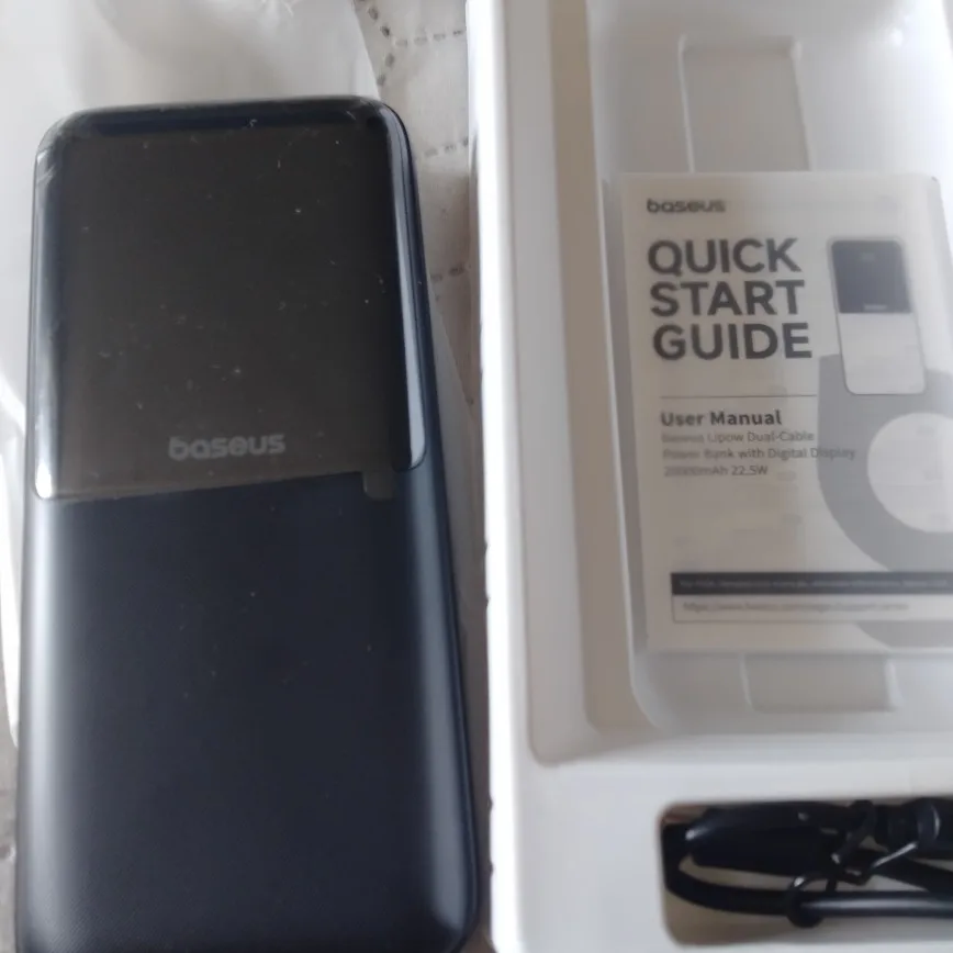 Fast delivery. Arrived charged. Performs all functions. Looks high-quality. There is no way to check the actual capacity. Supports fast charging. Satisfied with the purchase, recommend.
