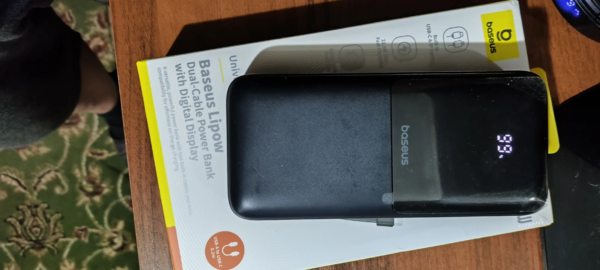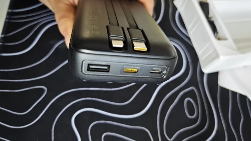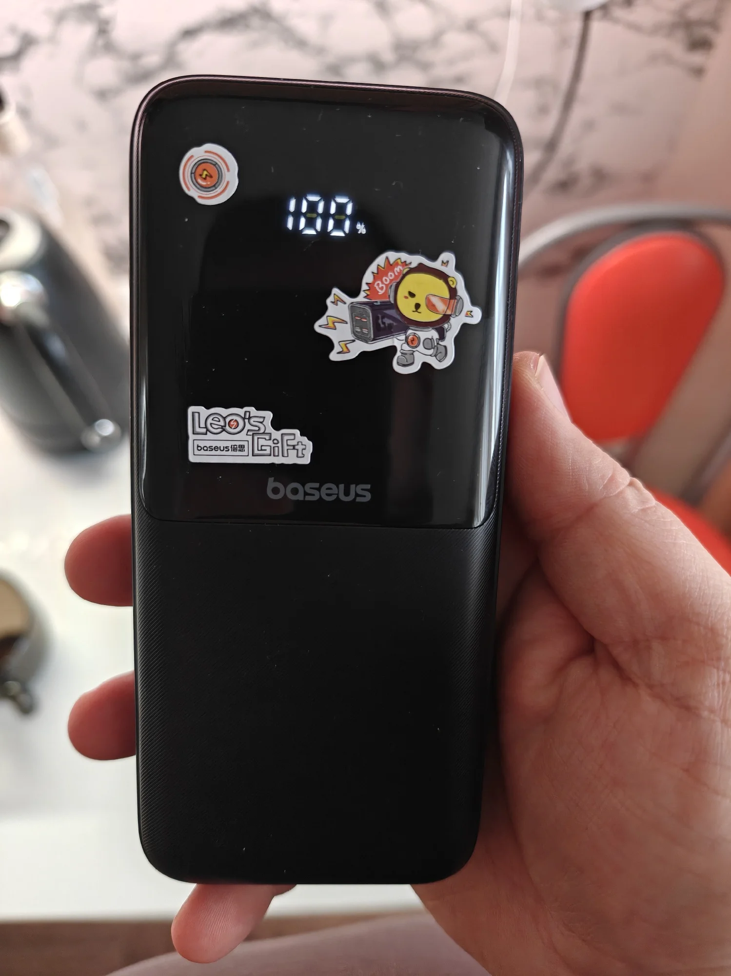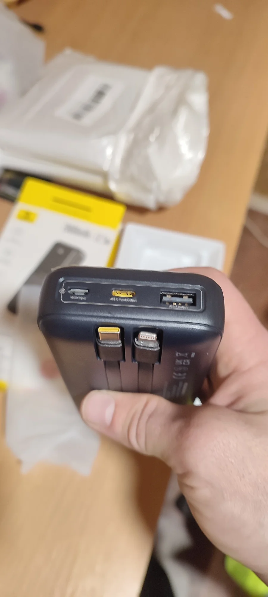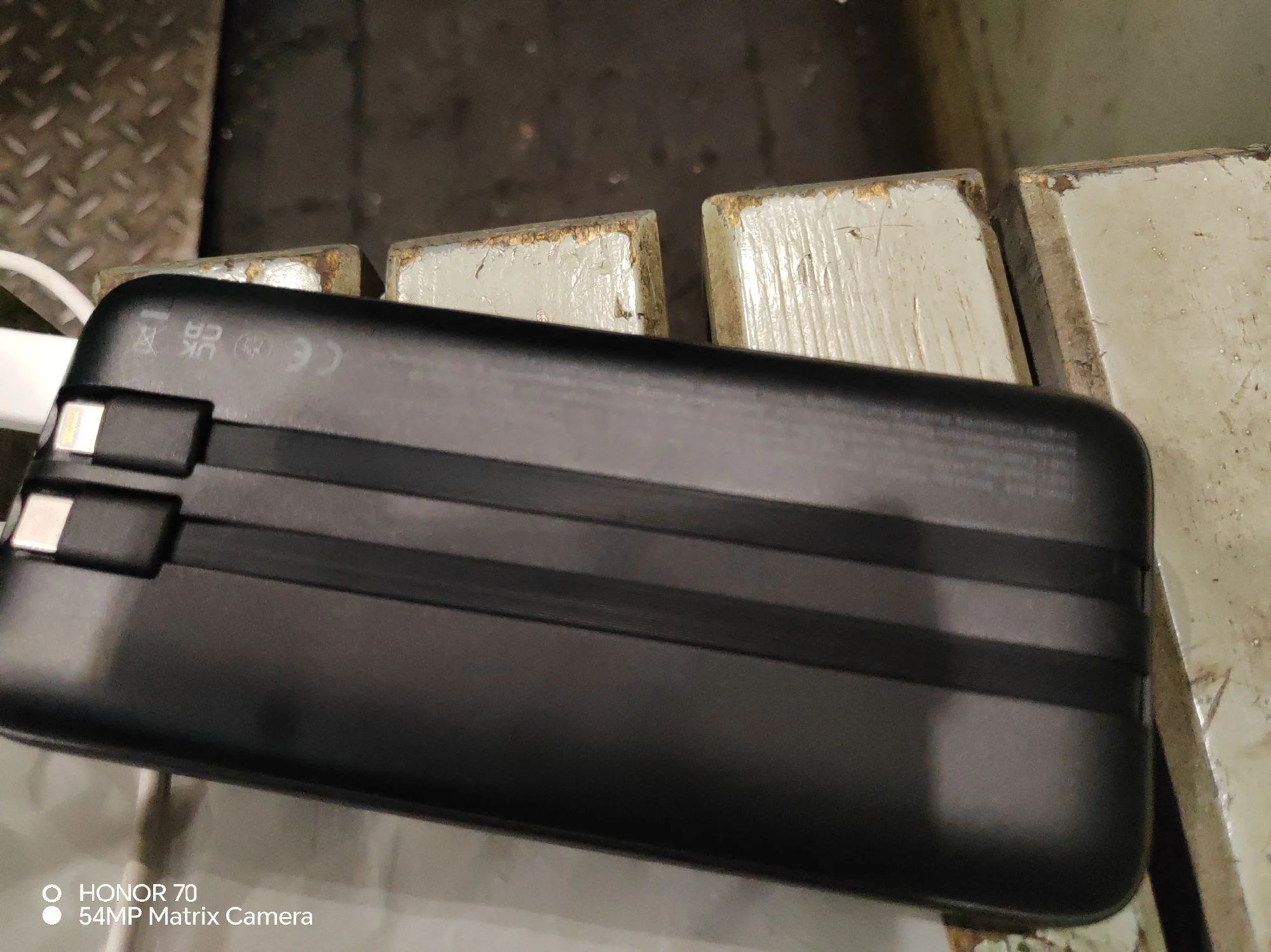 For a price under a thousand, I was pleased with the design, the remaining charge indicator, built-in cables that are generally convenient, all types of connectors. The stickers are funny. Cons: 22 watts is practically unreachable, if you read the manual included in the kit, the maximum is 18. The built-in cable provides fast speed to the tablet, but not to the s24+. Although to be fair, if connected via type C to type, fast charging appears. Another shortcoming I found is how to enable charging mode for small devices; it's unclear whether it exists or not, and two taps on the button don't work. Overall satisfied, a workhorse for home use when too lazy to go to the outlet.