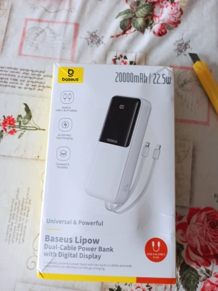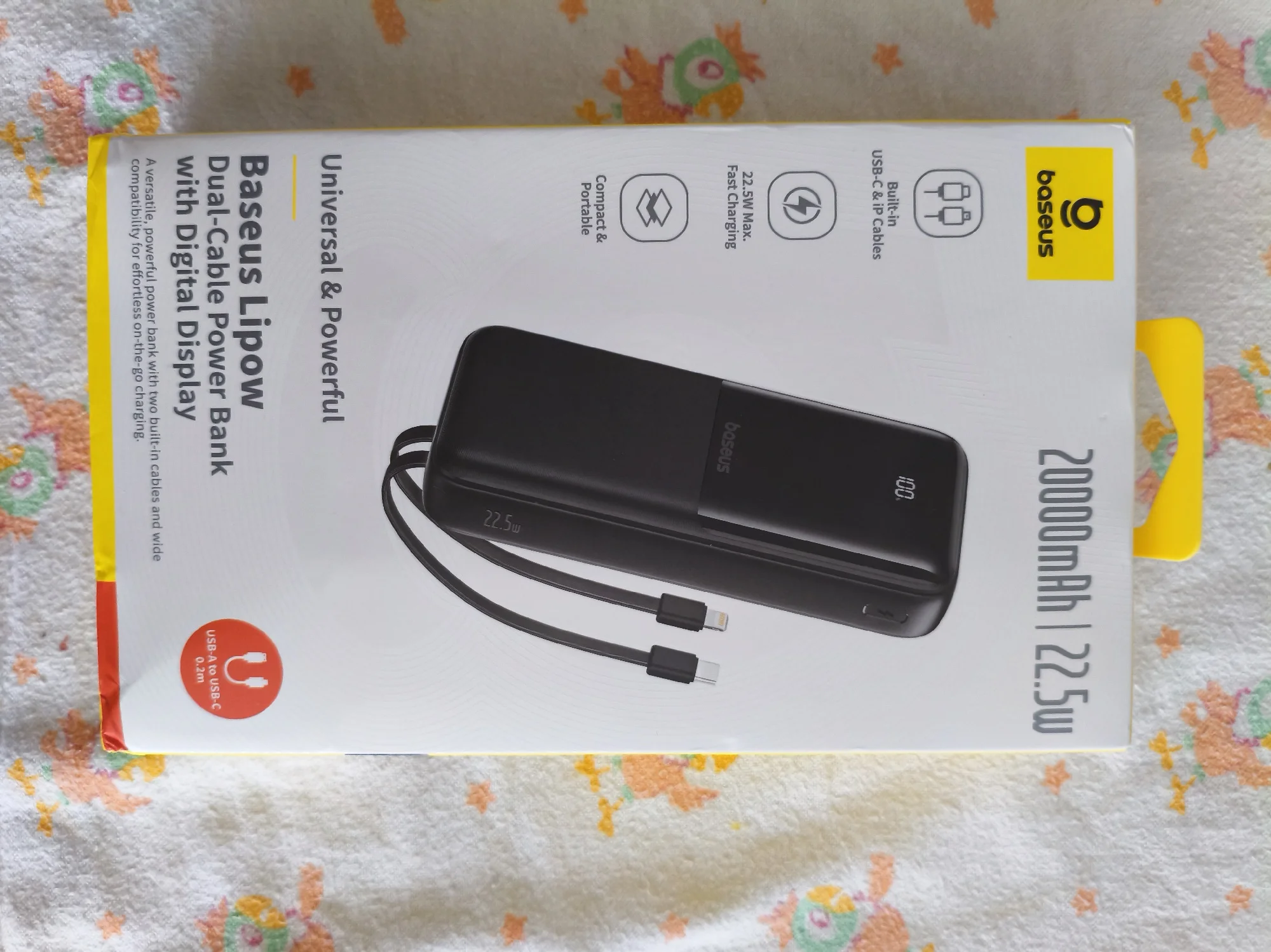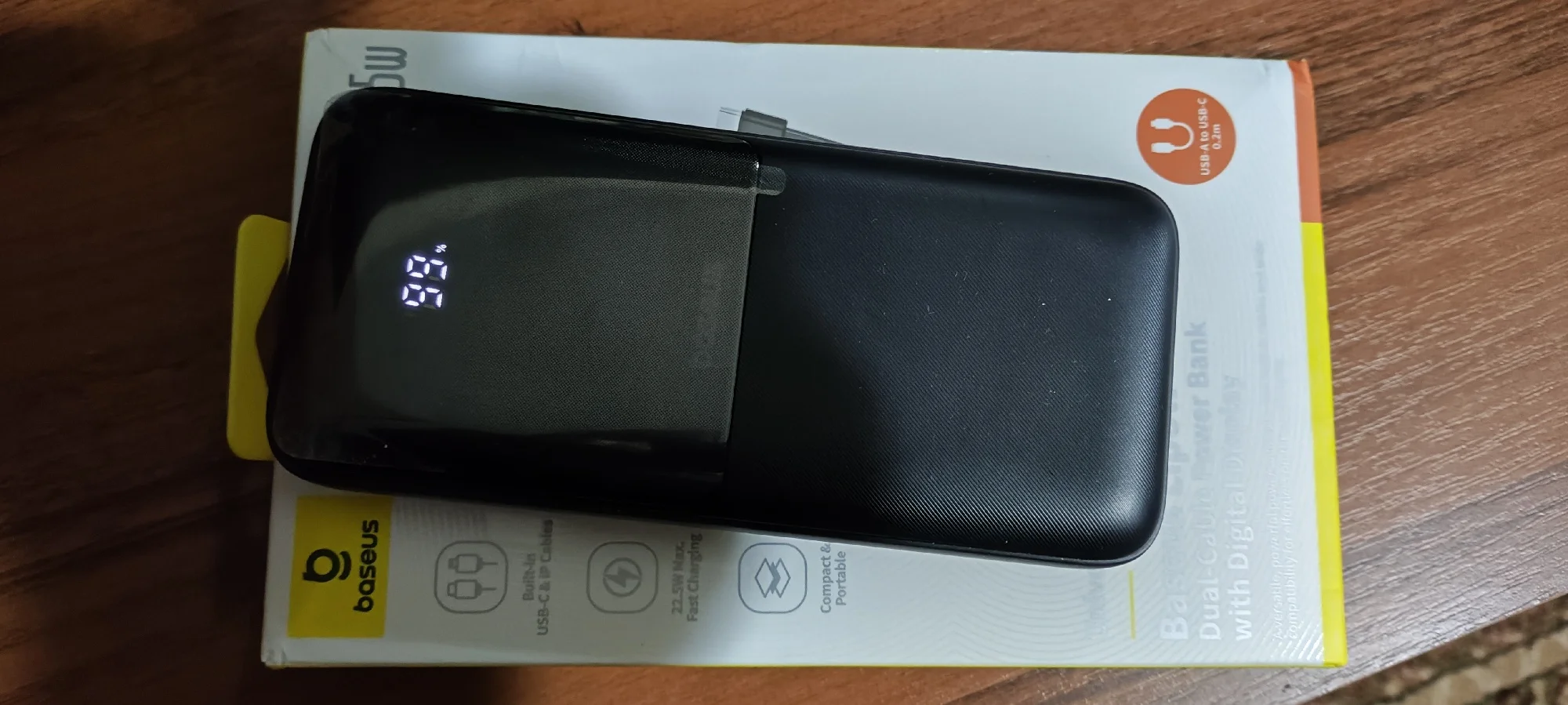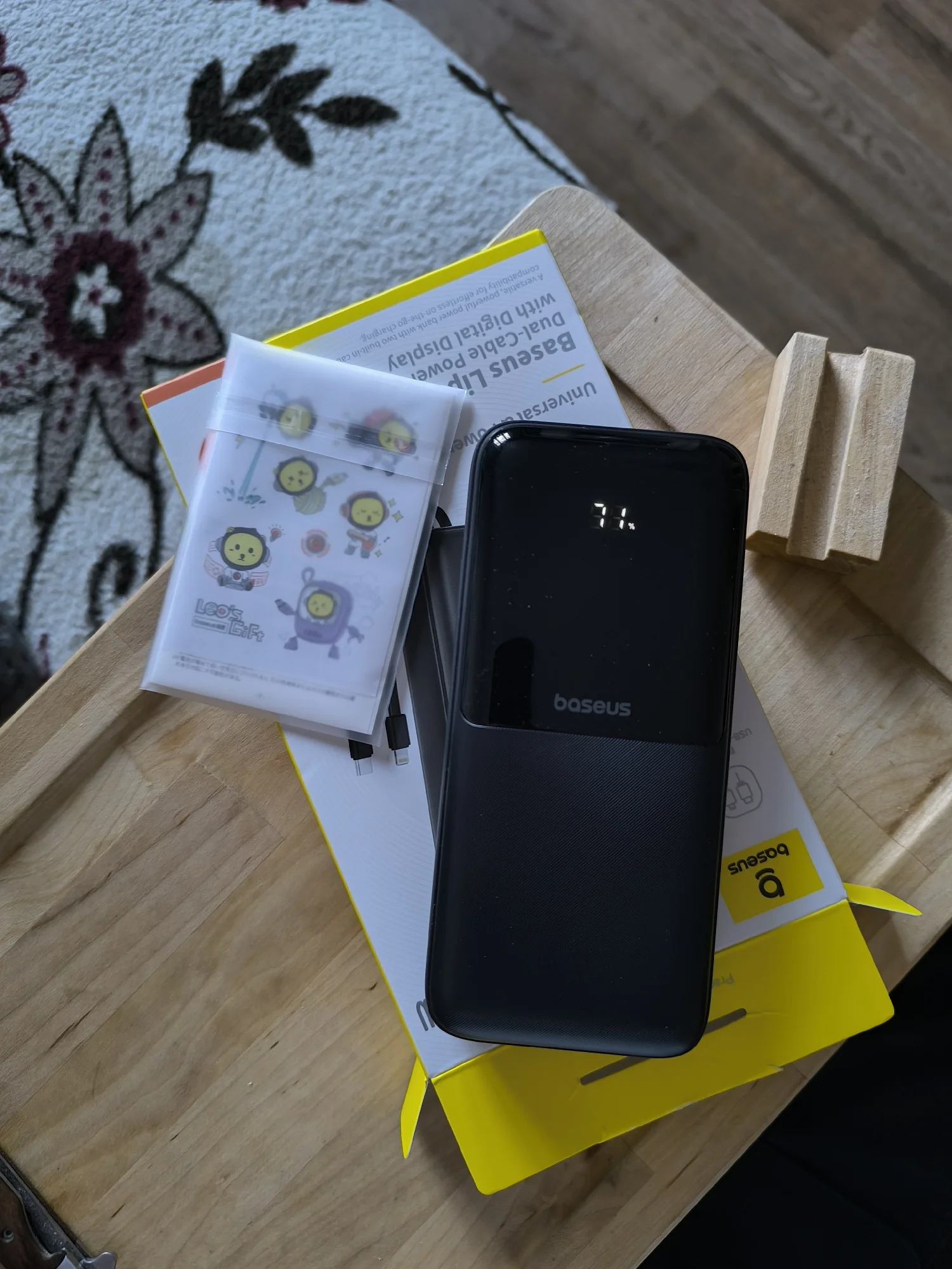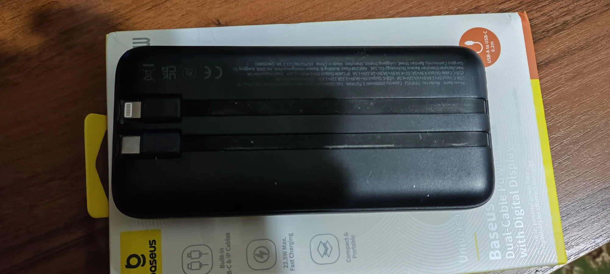 For a price under a thousand, I was pleased with the design, the remaining charge indicator, built-in cables that are generally convenient, all types of connectors. The stickers are funny. Cons: 22 watts is practically unreachable, if you read the manual included in the kit, the maximum is 18. The built-in cable provides fast speed to the tablet, but not to the s24+. Although to be fair, if connected via type C to type, fast charging appears. Another shortcoming I found is how to enable charging mode for small devices; it's unclear whether it exists or not, and two taps on the button don't work. Overall satisfied, a workhorse for home use when too lazy to go to the outlet.
