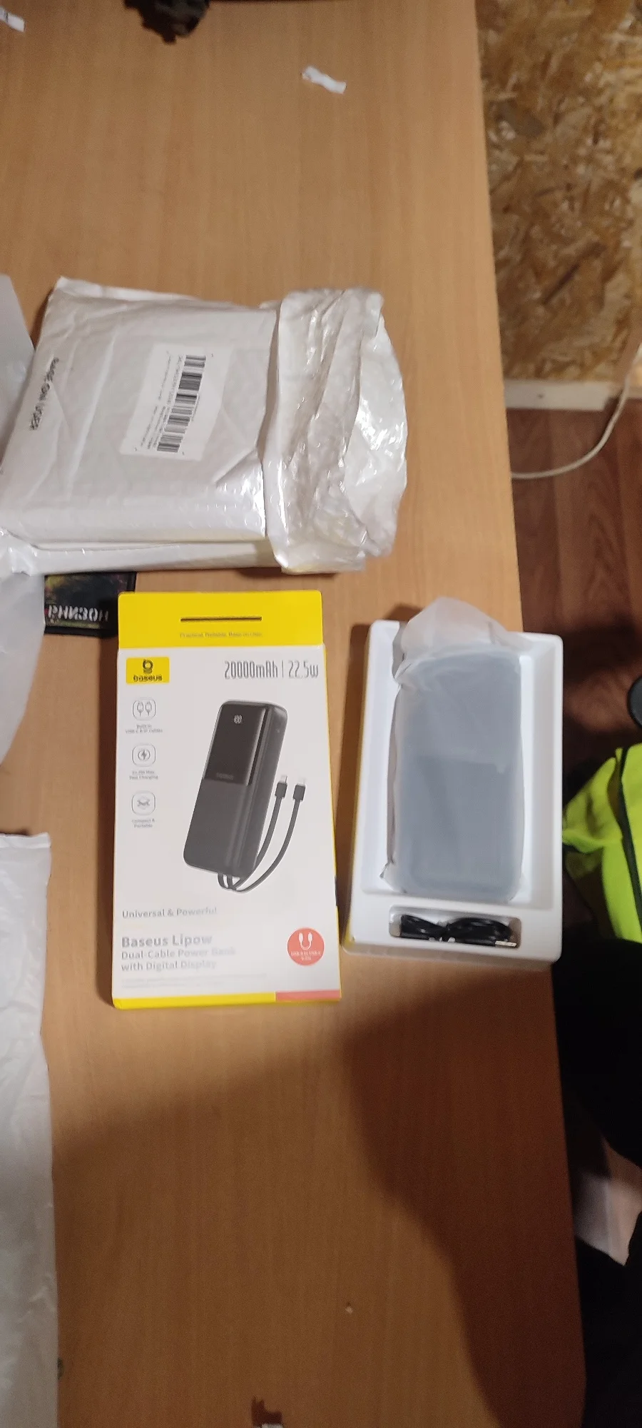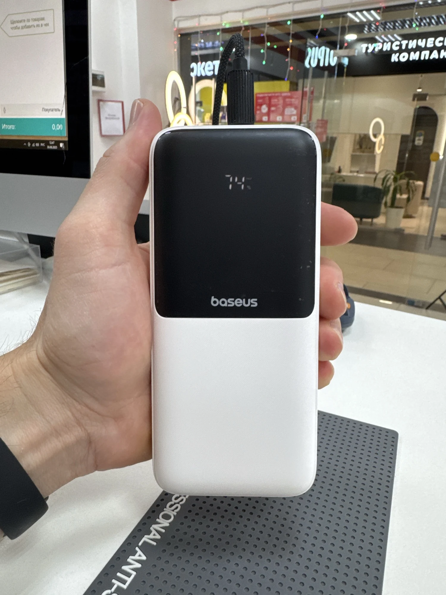 Bought on sale with a coupon for 926, excellent power bank for this price, delivery took 20 days, initially charged at 80%, convenient and compact, two cables not detachable type-c and lighting.