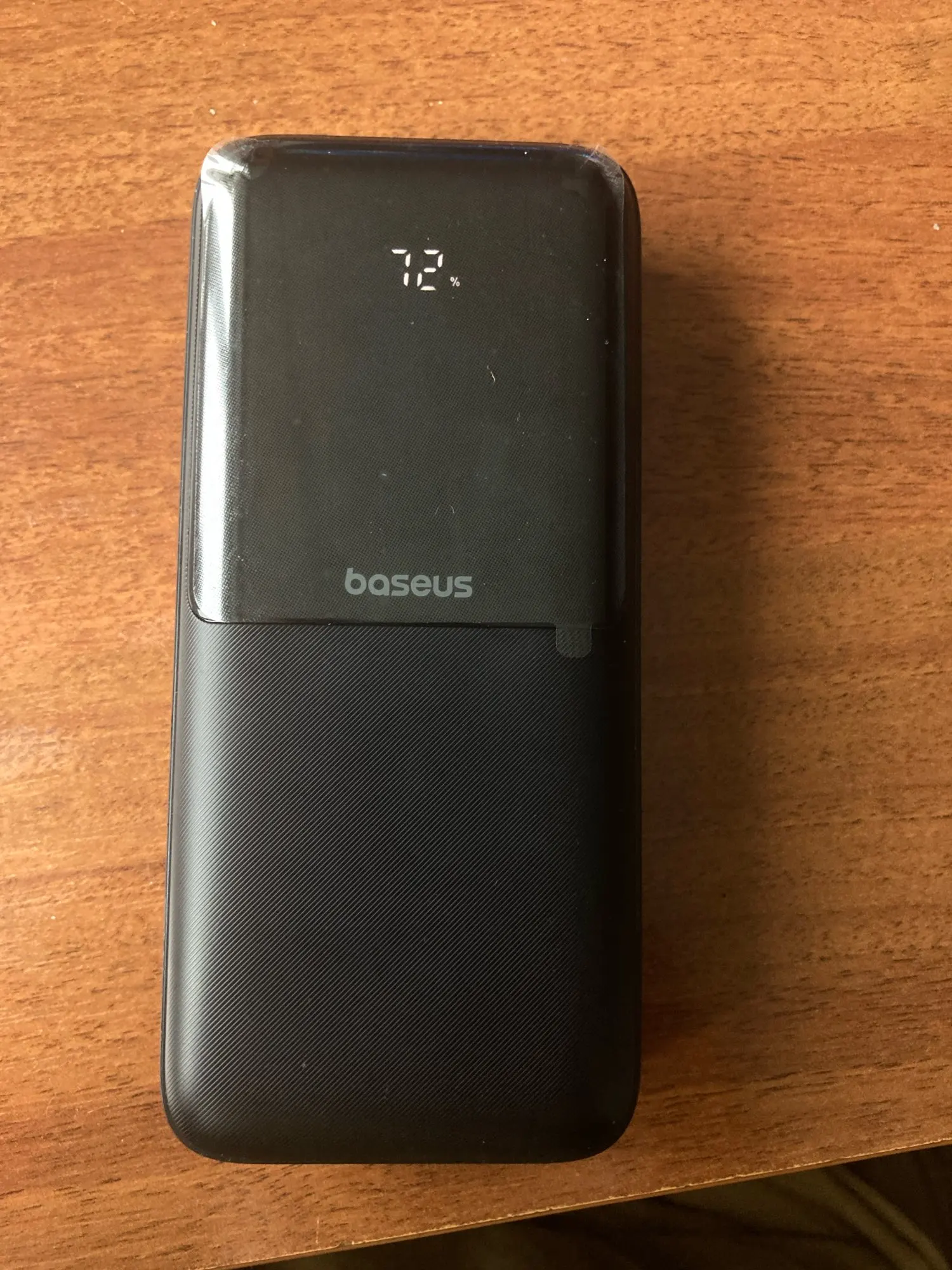 heavy, but the charge capacity feels slightly less than stated because... Compared to another power bank of the same capacity, charging takes one cycle less, but this is not significantly noticeable. I chose it because it already has built-in wires, even though they are the simplest ones, the main thing is they are there and there's no need to search. was charged at 72%. Arrived in a crumpled box, but intact itself, the packaging had a thin layer of bubble wrap. I recommend it!