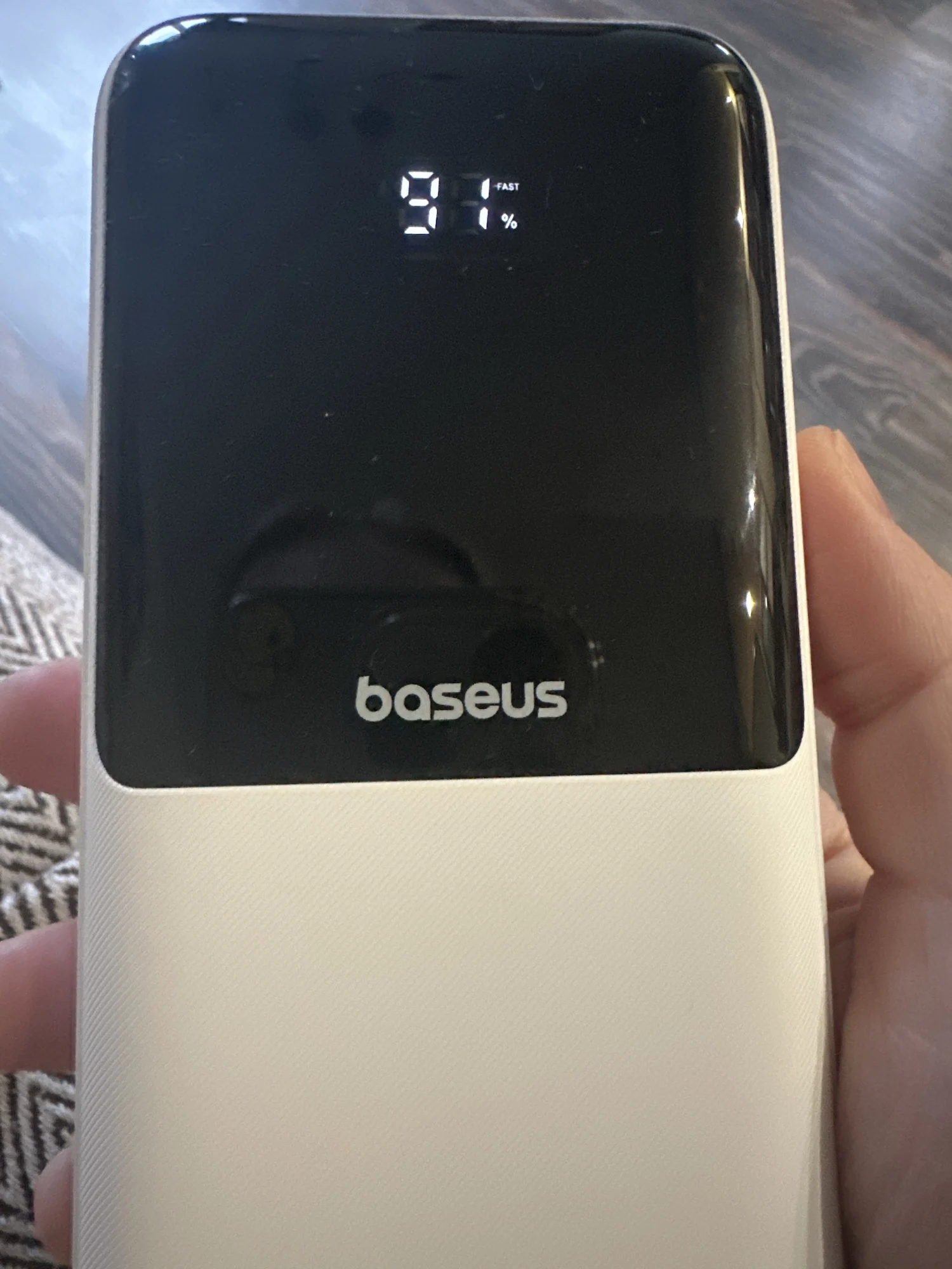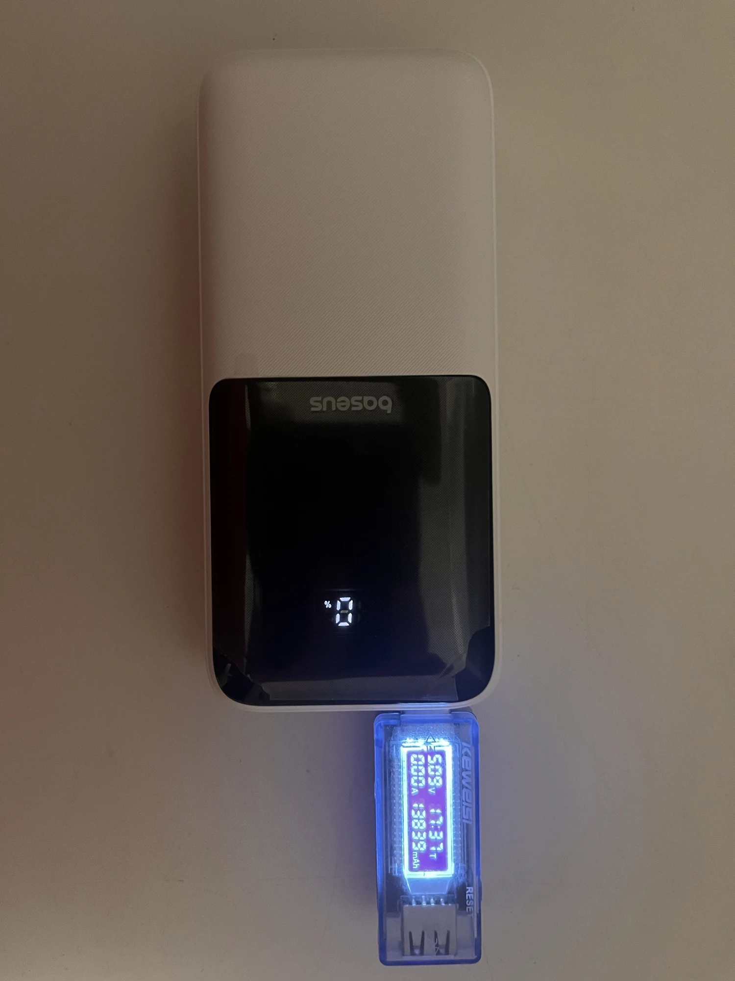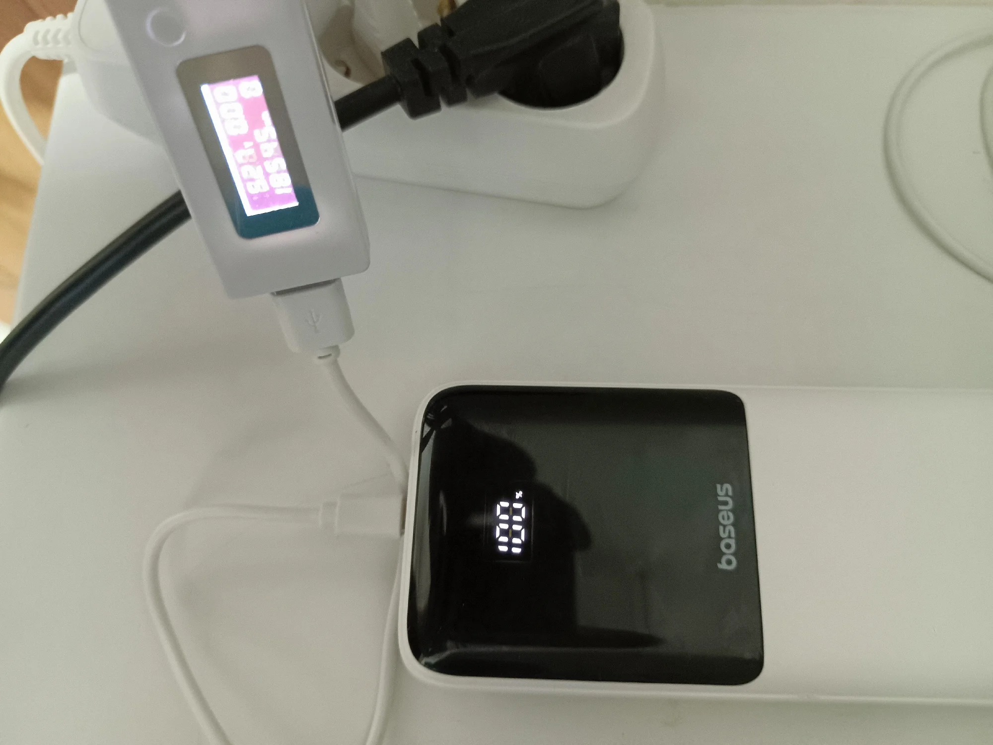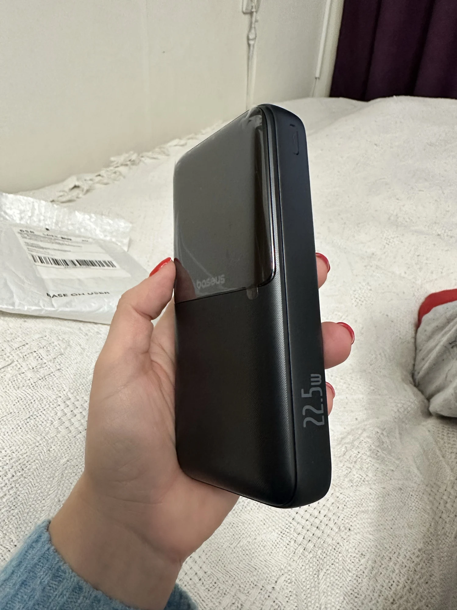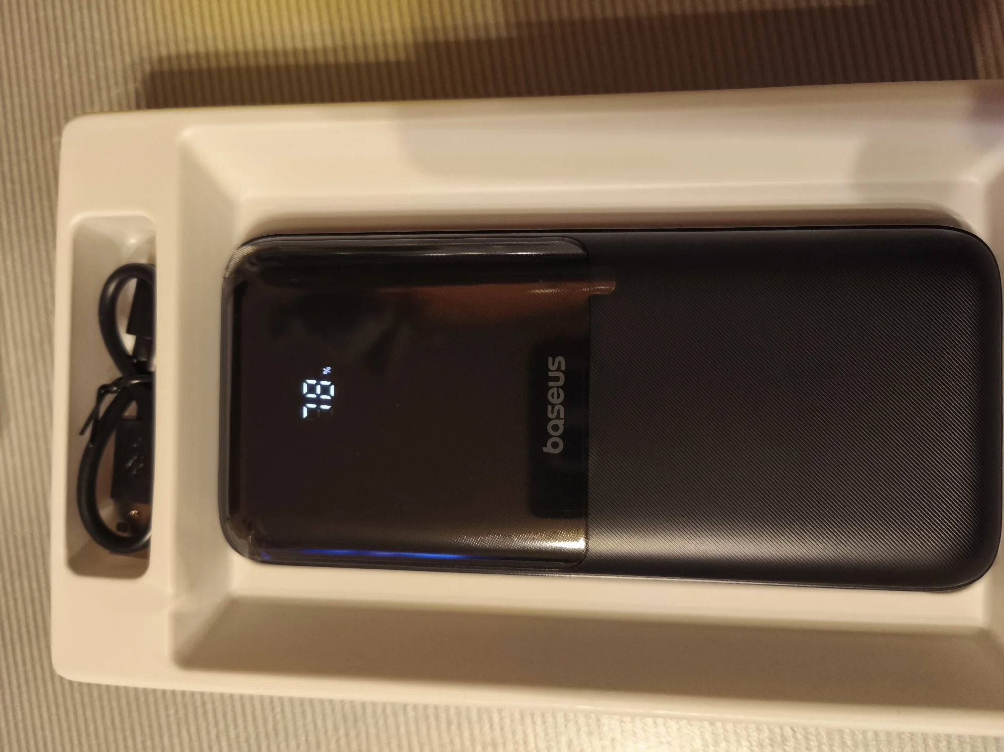 Arrived charged at 75%. I put it on charge, but didn't immediately notice that it's charging very slowly. Does not support fast charging and there is no 22 label on it. 5 watts can be said to be misleading. It's a pity. Please be more careful. I'm not an expert on capacity, but the bank is heavy, and if it's Baseus, I think honestly about the capacity.