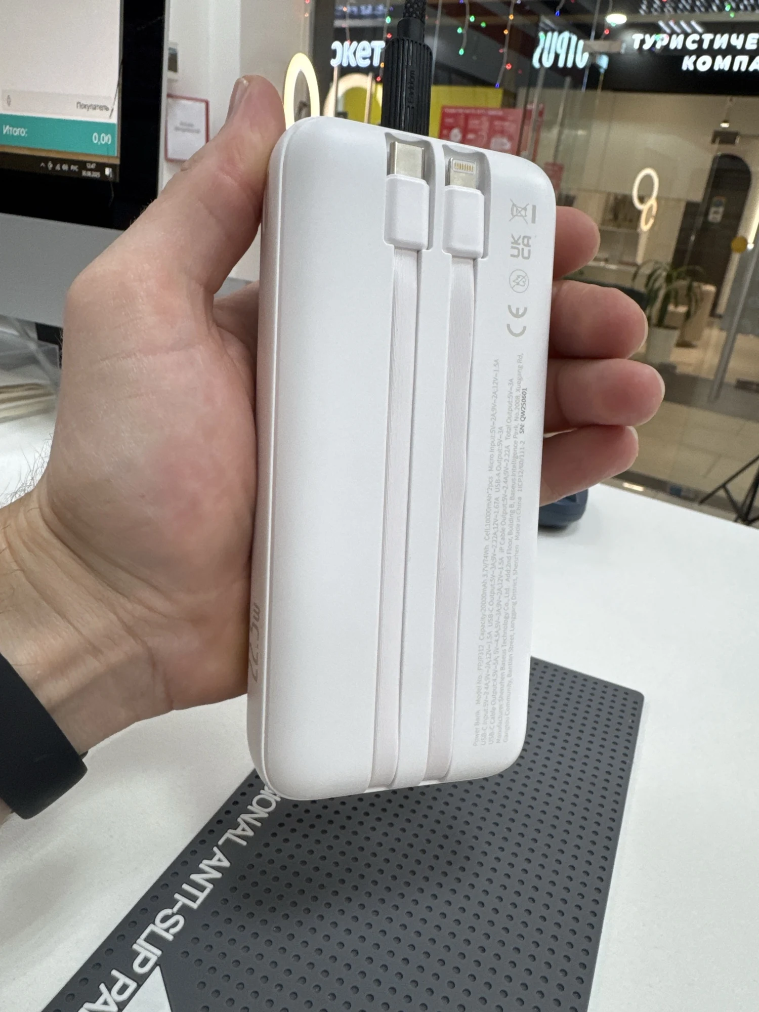 Thank you to the seller for fast delivery to Chernigov - two weeks UP! The power bank arrived with 73% charge, it’s just gorgeous, beautiful, stylish, if there are already two built-in cords, one type - which supports fast charging, it’s super cool, no need to carry wires along with you on the road! 👍 Thank you