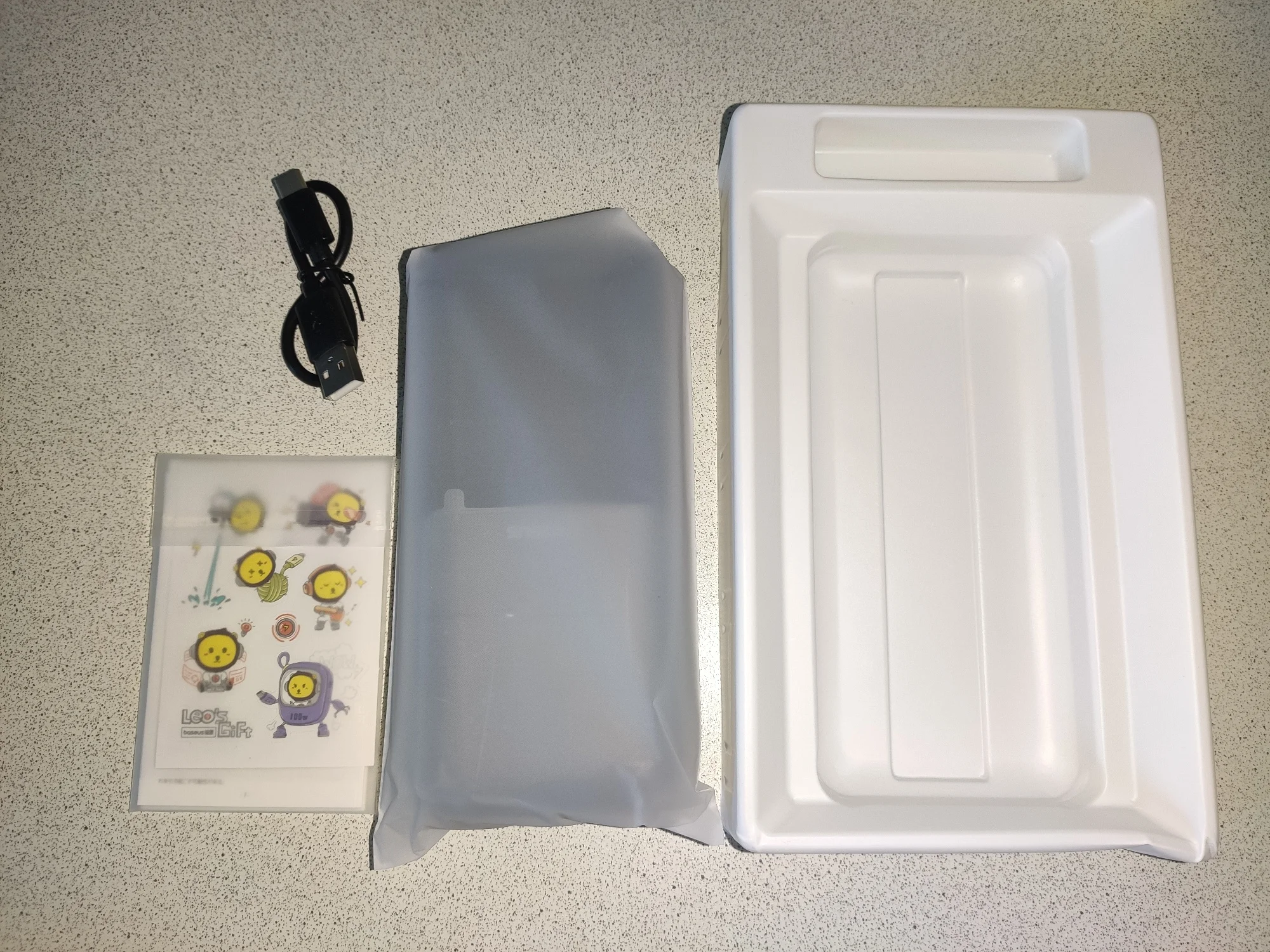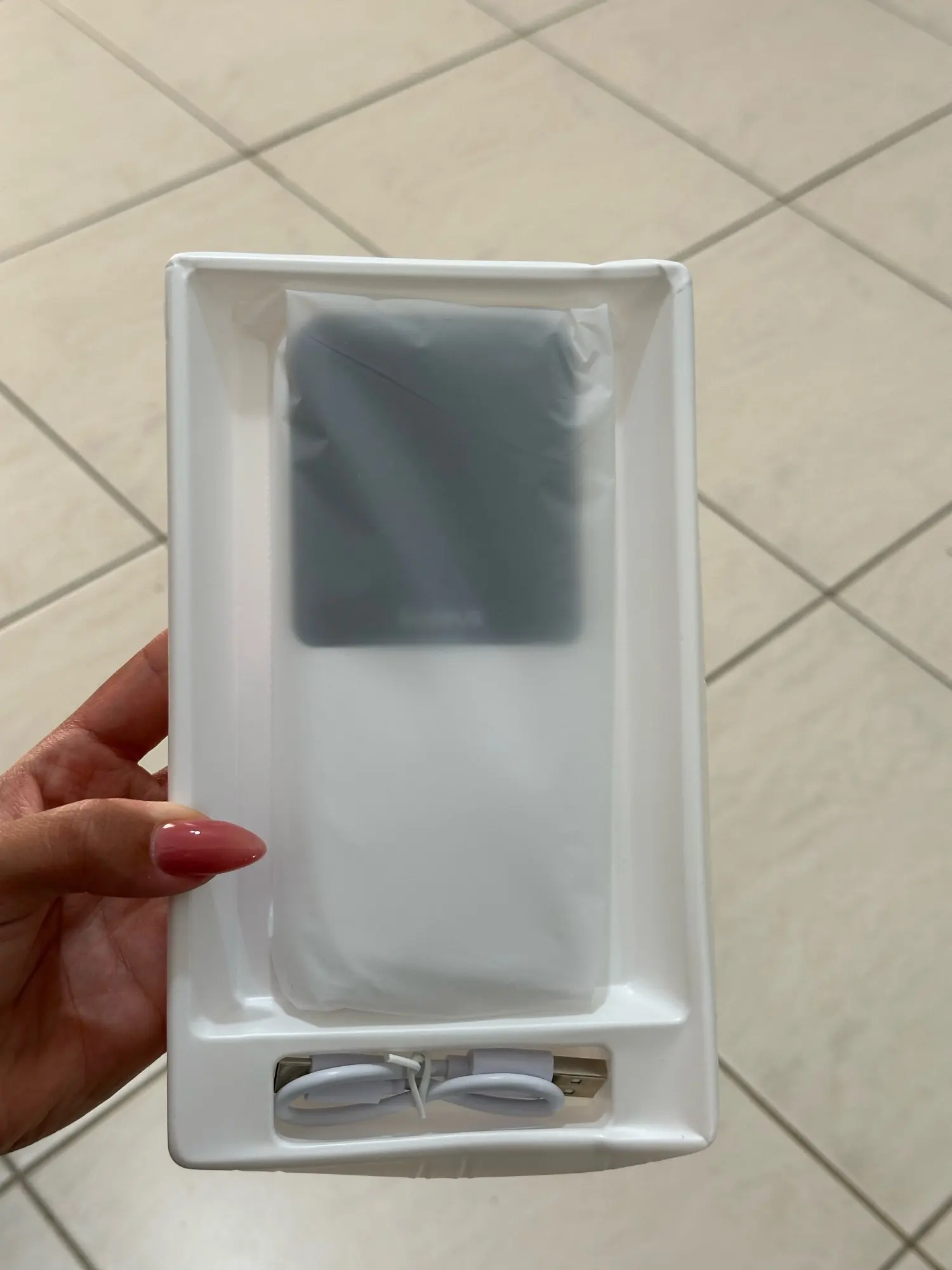Arrived intact and undamaged, slightly wrinkled packaging, heavy, pleasant to hold, touch button for power on, charging cable, convenient that two cables are built in at once, overall everything is satisfactory, we will use it, and then, as they say, we'll see. 🧐