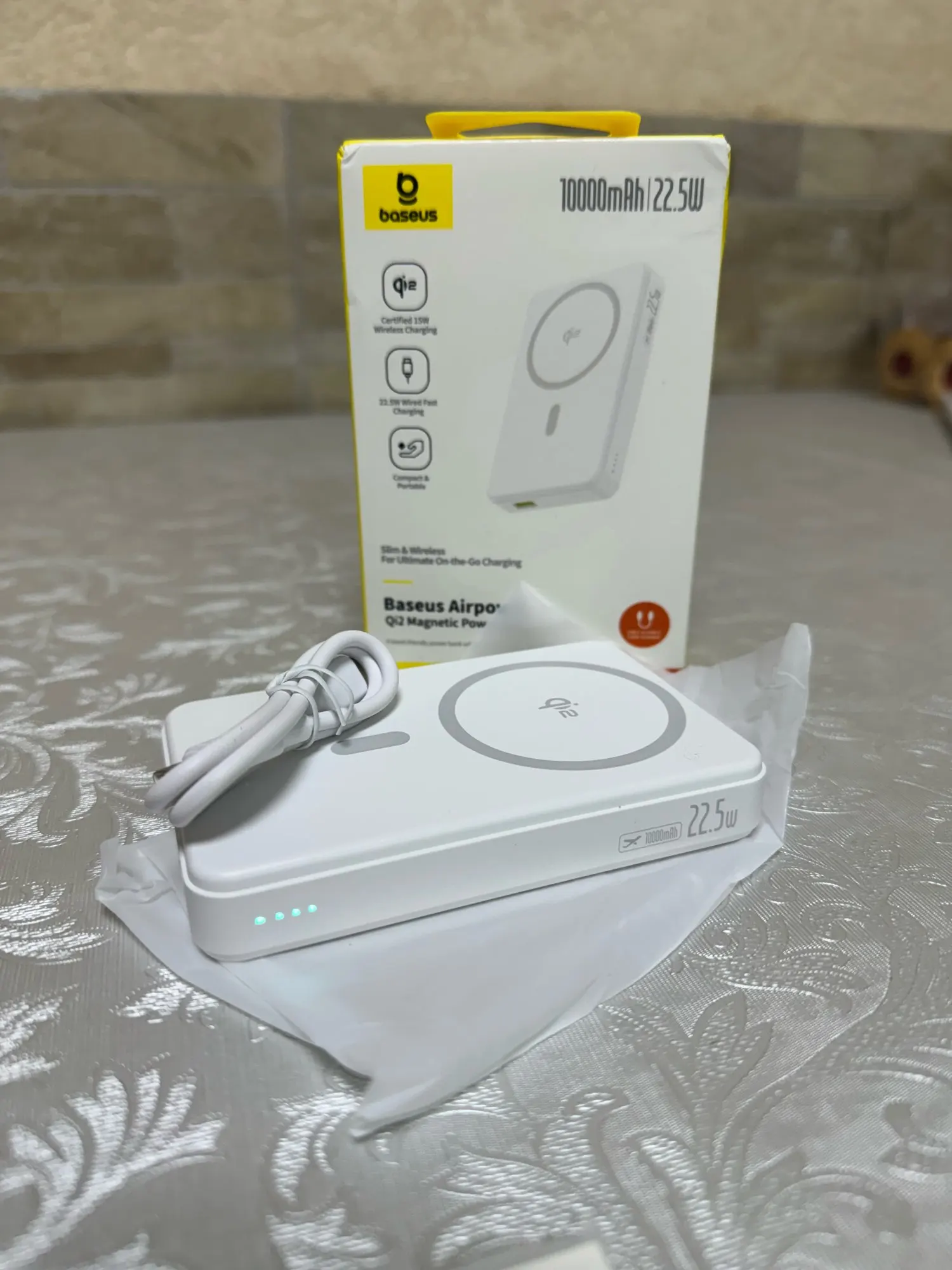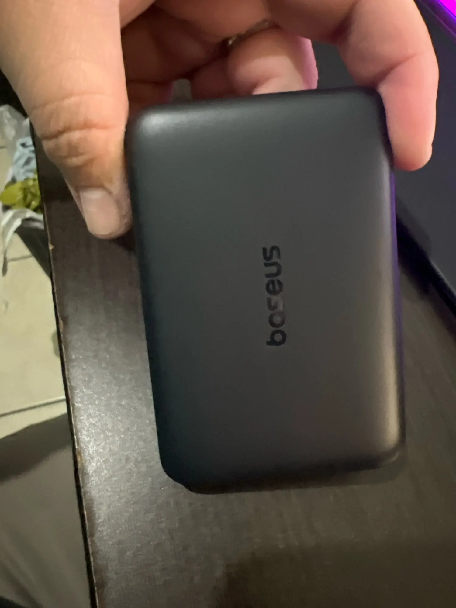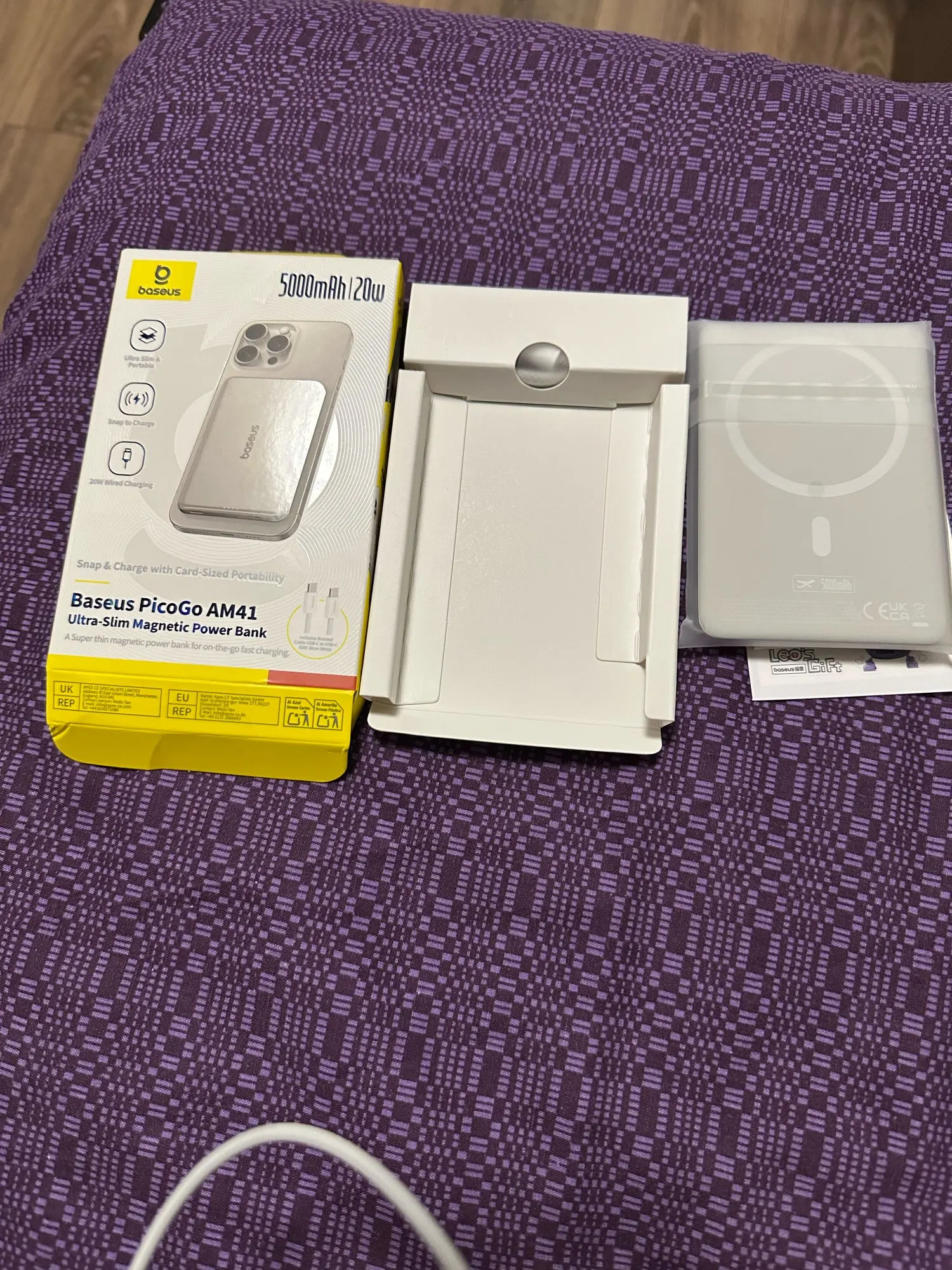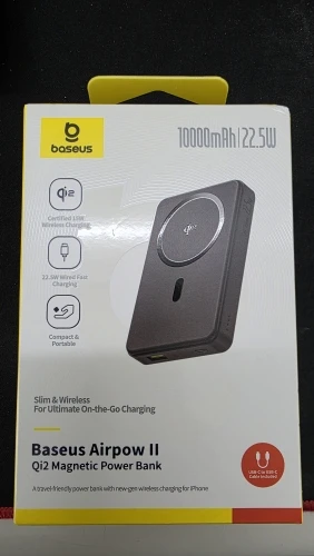 Compact size, holds a charge and charges normally. Baseus products are usually always satisfactory and last a long time.