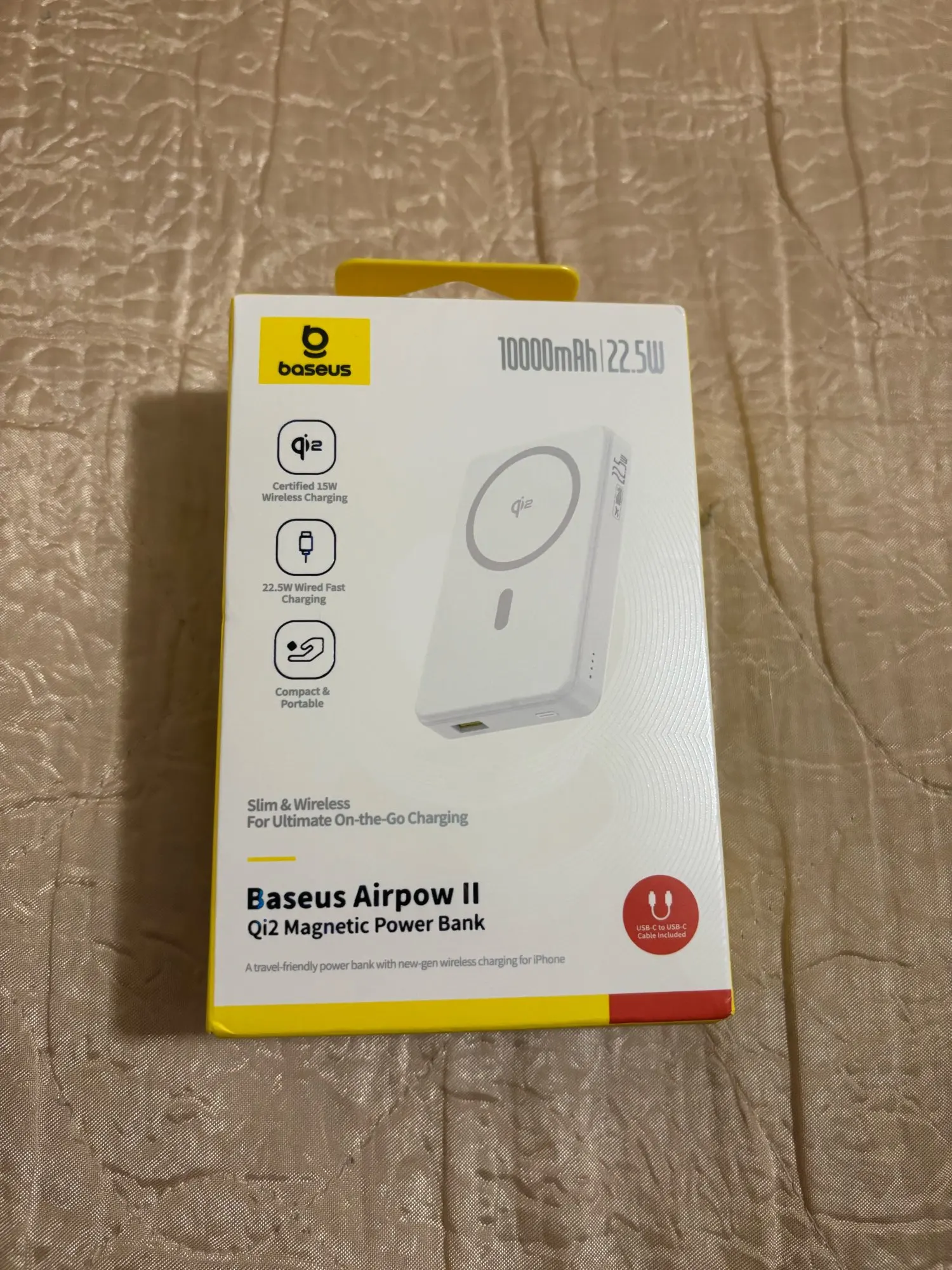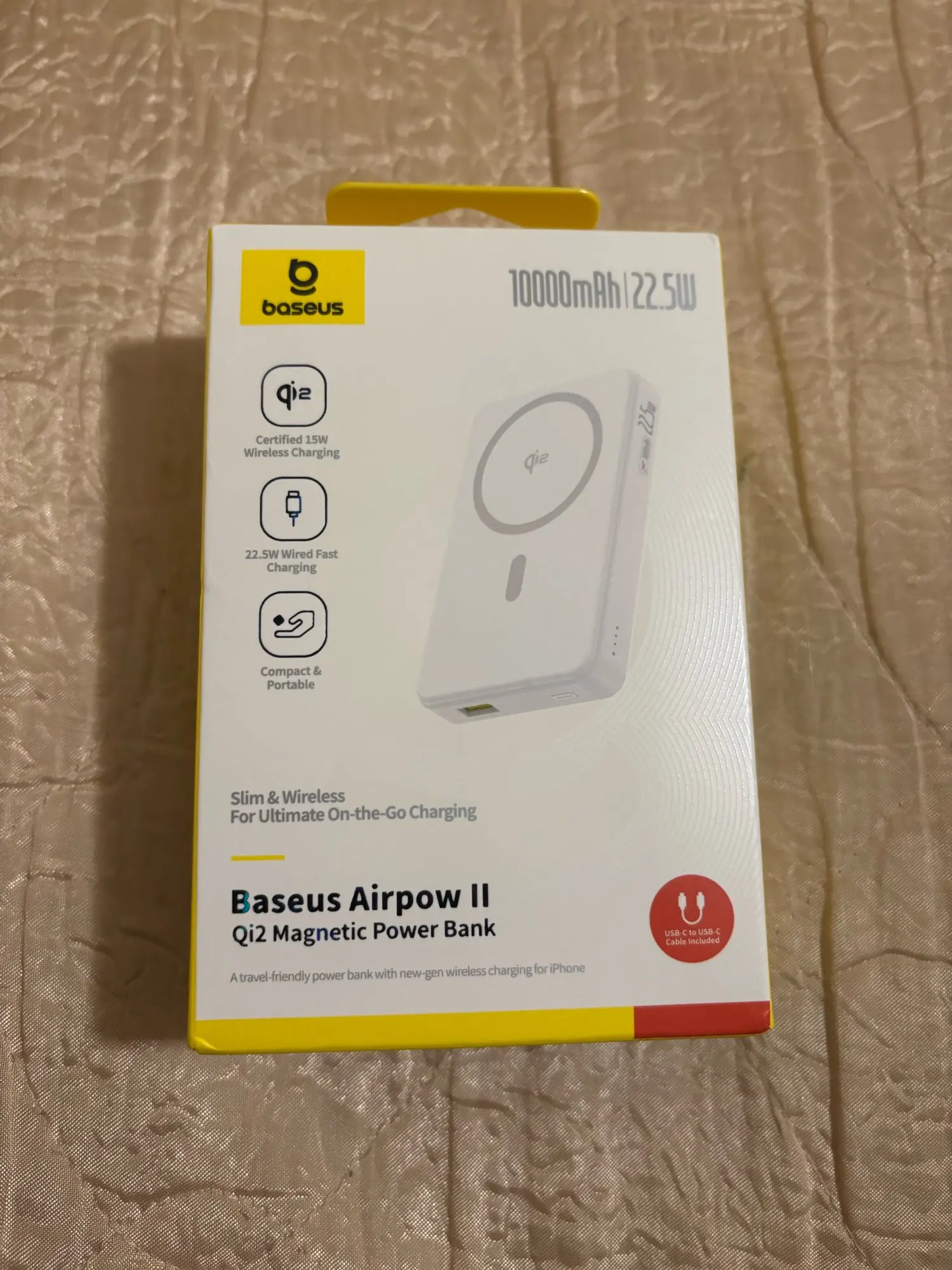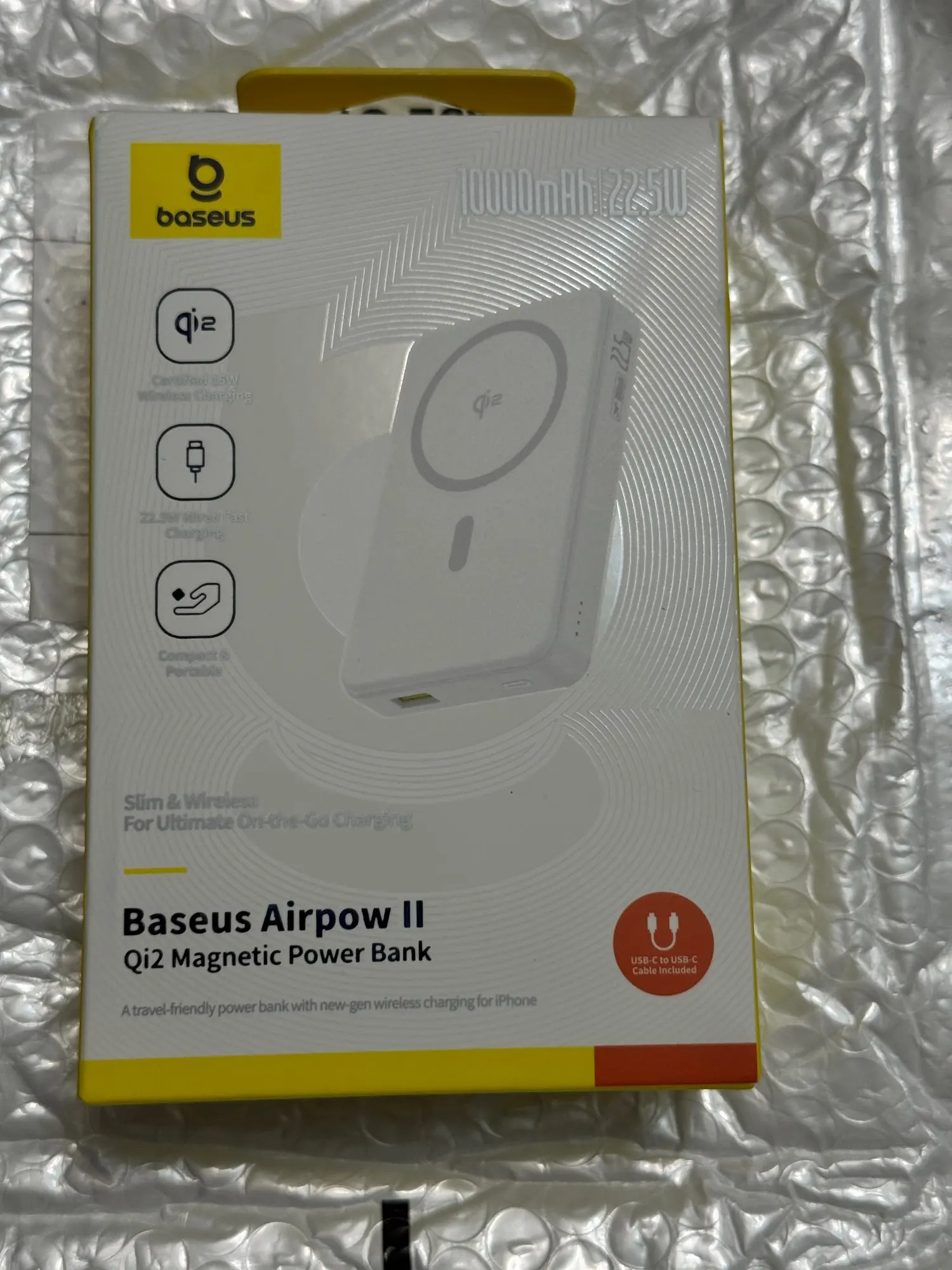 Compact size, holds a charge and charges normally. Baseus products are usually always satisfactory and last a long time.