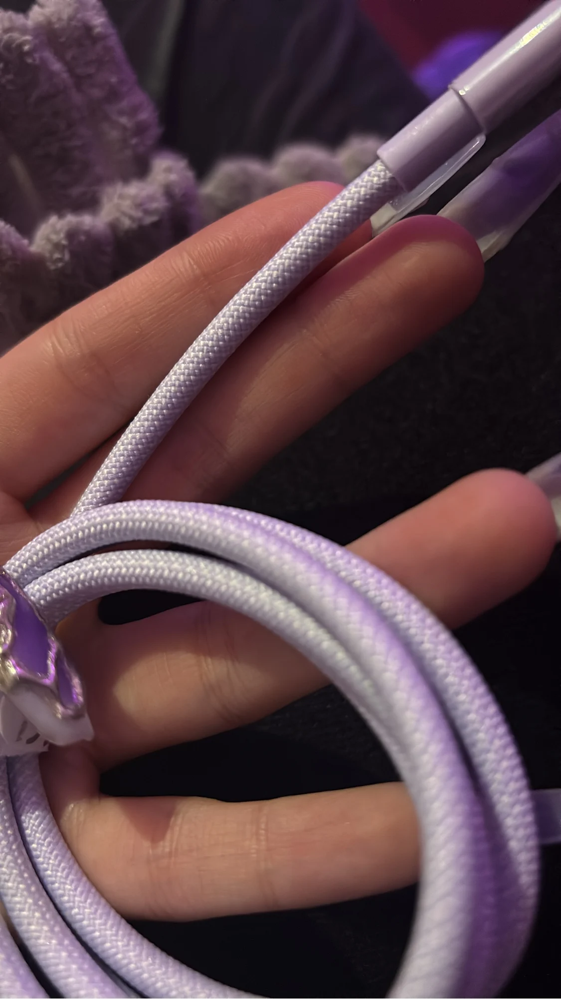 What a beautiful color! Took it as a set with the bank and case, the color matches perfectly. The cable is of high quality, not flimsy, thick, with a dense braid. It looks very cool and performs excellently in use. Shipped quickly, I recommend the product and the seller!