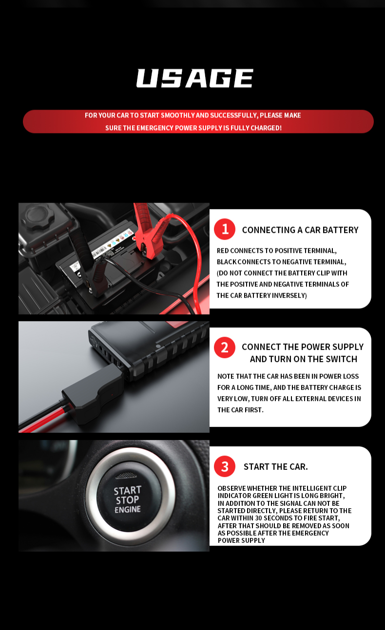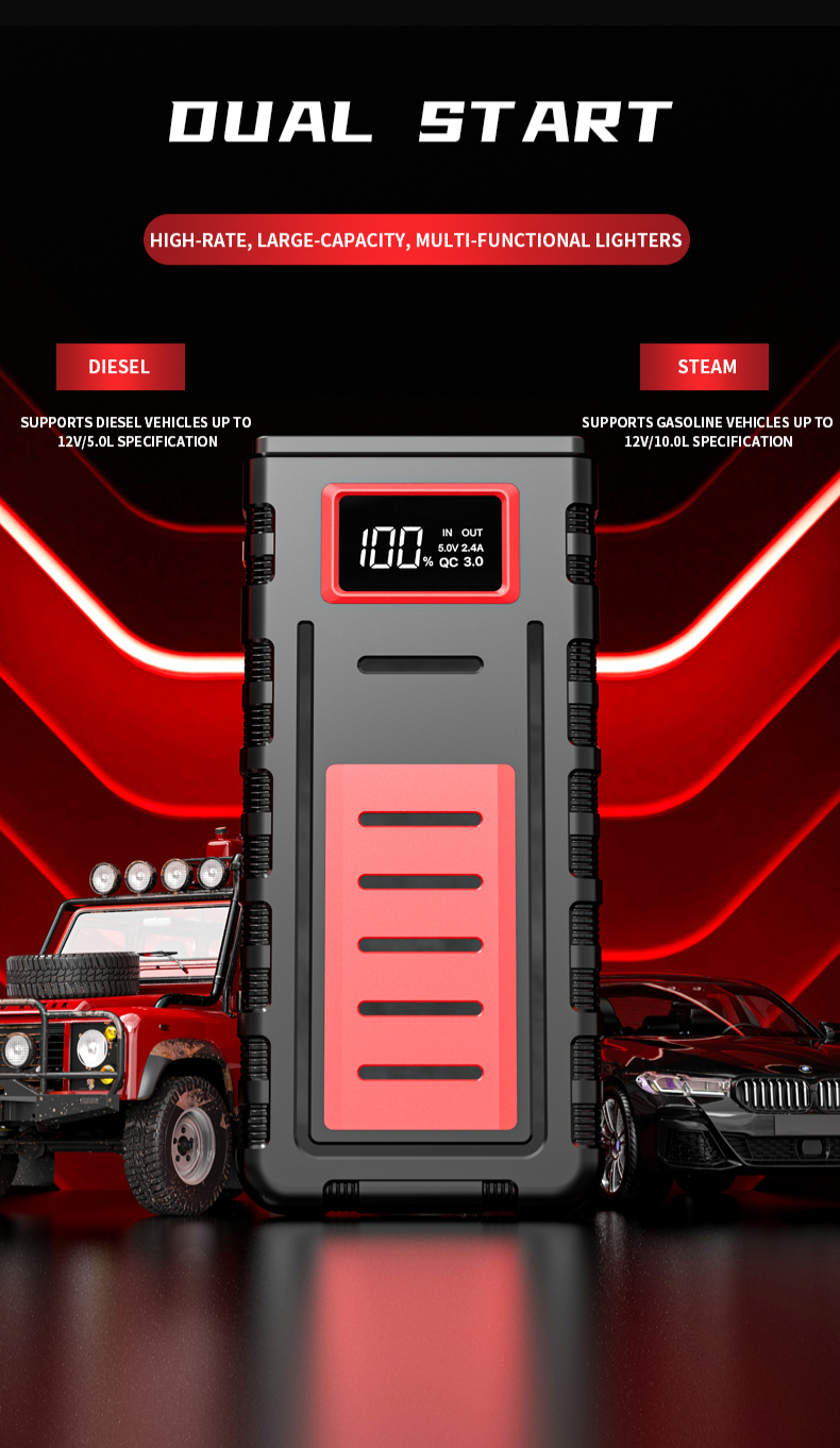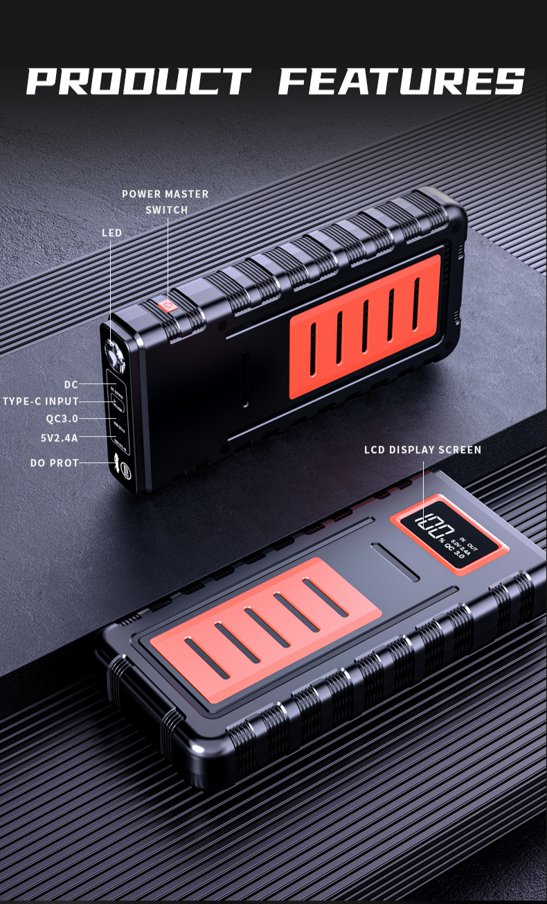 Car Emergency Start Power Supply,Portable Multi-function Powerbank 12V Car Ignition Jump Starter Booster 1000A 1600A 2000A 3000A