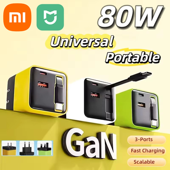 XIAOMI 3 in 1 GaN Charger Portable Type-C USB 80W Fast Charger Module Retractable Phone Charger Wall Plug For iPhone Samsung