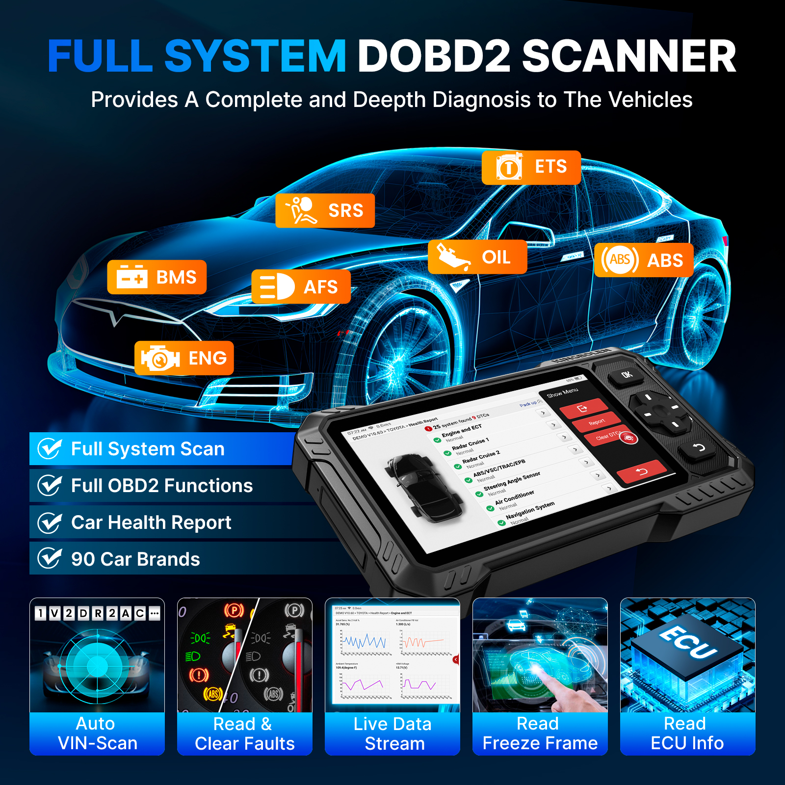KINGBOLEN S6 ELite 6,2 pouces CAN FD Tous les systèmes français Outils de diagnostic de voiture Test bidirectionnel Scanner OBD automatique SAS DPF TPMS ECU 15 Réinitialisation à vie Gratuit