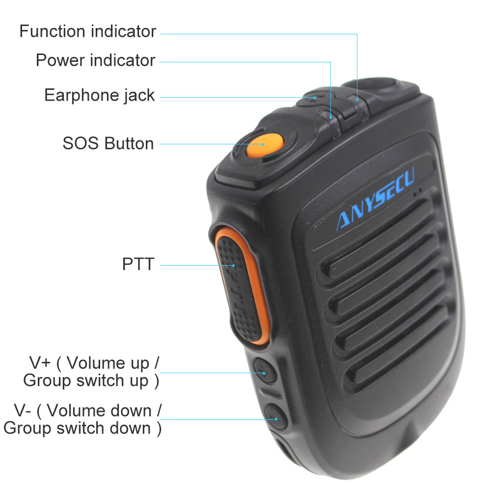 Microphone sans fil BT4.2 ANYSECU B01 pour Radio réseau 3G 4G W7 W7plus Radio IP fonctionne avec l’application REALPTT ZELLO