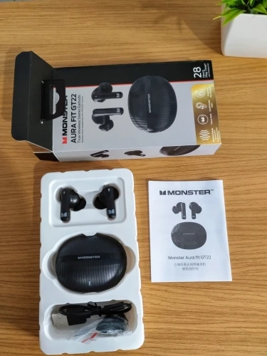 The package arrived quickly. The packaging was slightly dented, but everything is fine. Instructions are in the box. Everything is included. The headphone case is comfortable to hold in hand. The headphones fit perfectly in ears. Noise cancellation is excellent. The sound is loud, and you can adjust the volume both on the headphones and on the phone. Bass sounds great. The battery life during music playback is stated to be approximately 5-6 hours, but this depends on how loud you listen to music. The headphones are simply excellent. I recommend them!