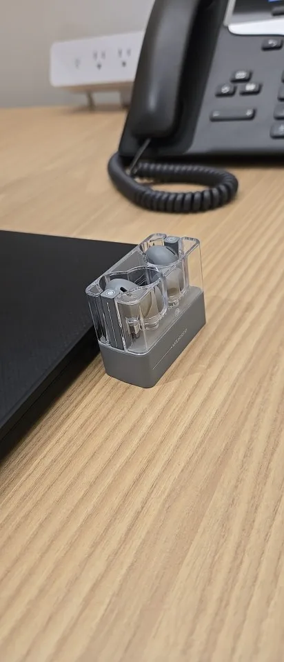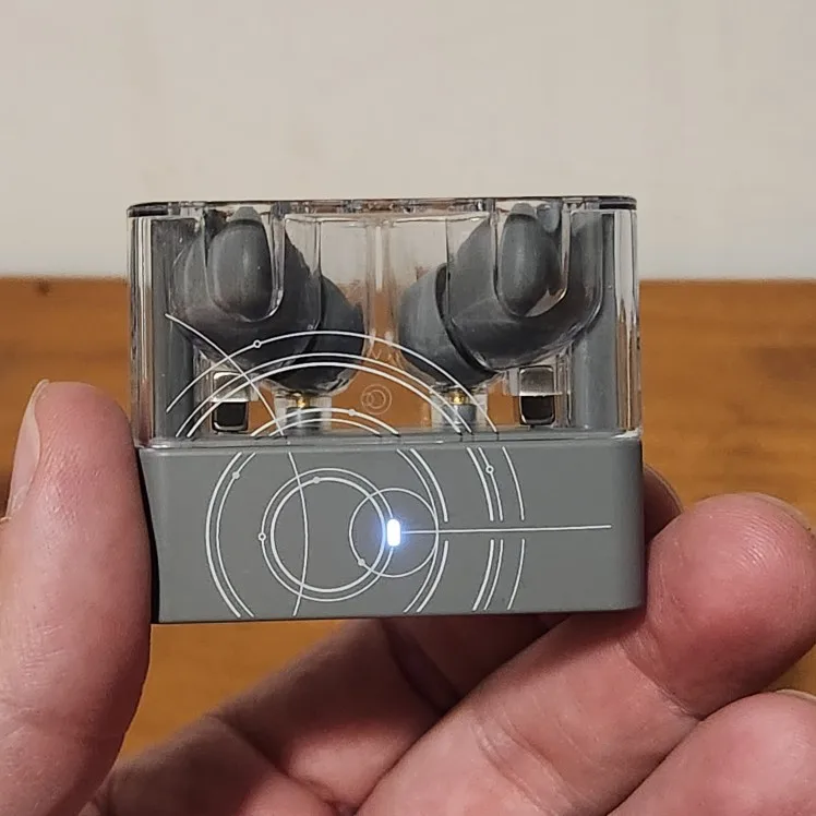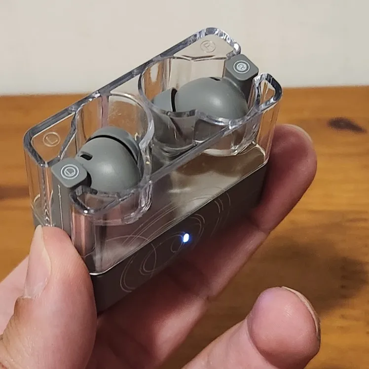 This is my first time buying Suwolwoo, and delivery took 6 days. The sound quality was a bit lower compared to AirPods, but external noise cancellation was good. I also received extra ear tips and a transparent case. The overall finish had a matte gray feel, and the charging case was exposed type. It matches well with the transparent case. It feels average and good? There aren't many reviews in Korea. I'll say the evaluation is good. The illustration is very pretty.