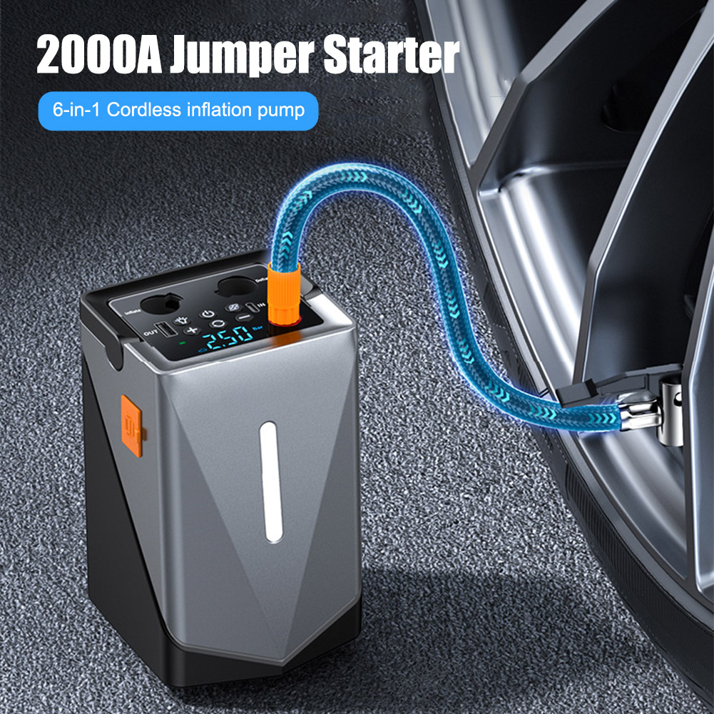 Portable Jump Starter with Air Compressor, 6-in-1 Car Battery Jump Starter with 150PSI Tire Inflator, 2000A Jumper Starter Kit
