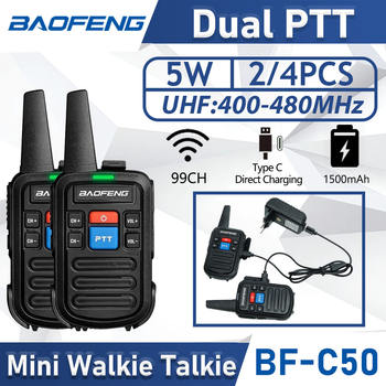 BaoFeng BF-C50 UHF 400-480MHz Transceiver 5W Two Way Radio Type-C Mini Walkie Talkie 16 Channels 1500mAh Dual PTT Ham Radio
