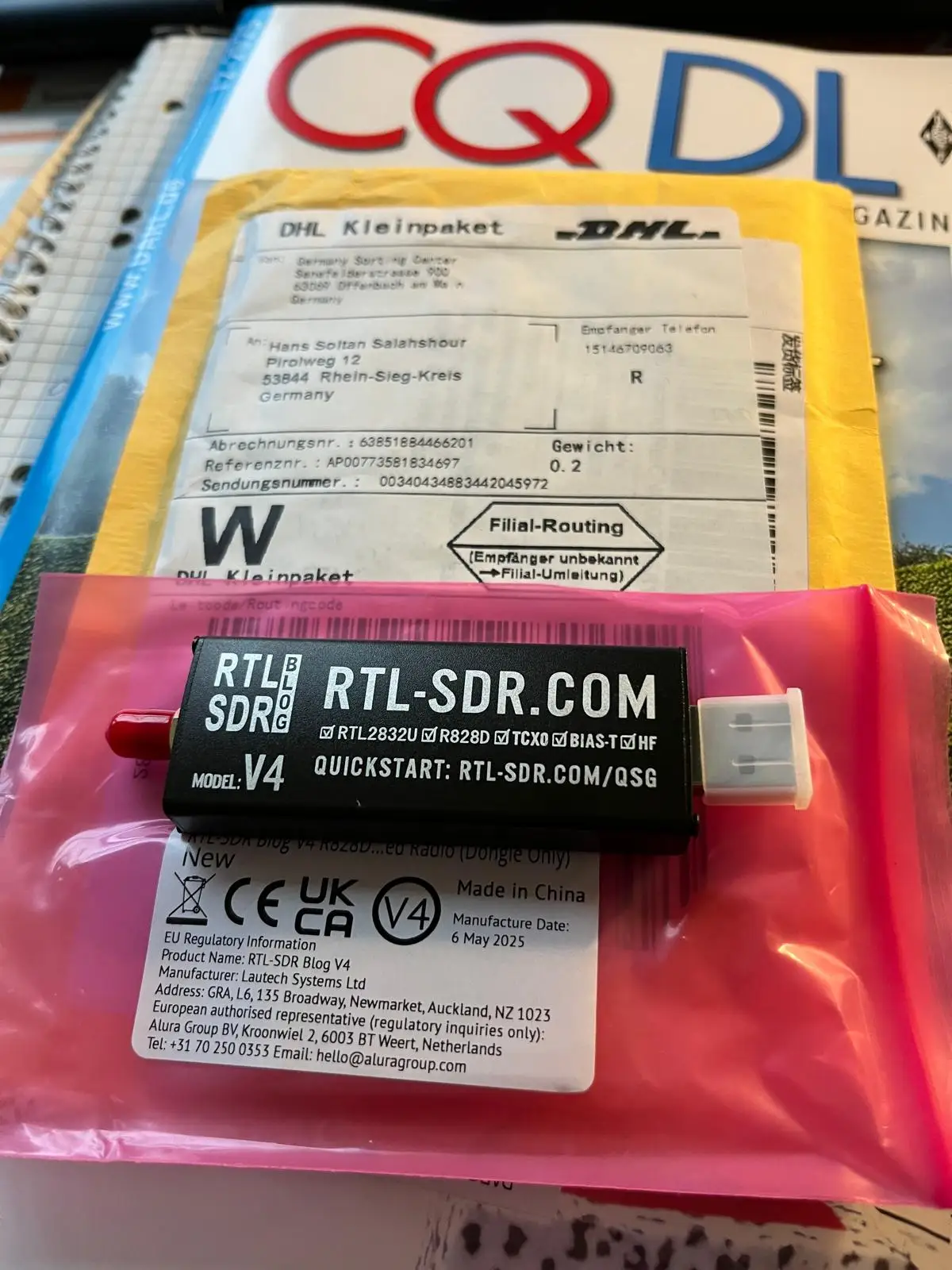 Fast delivery, the stick has excellent reception quality. Tested with SDR# and active Magneticloop so far.