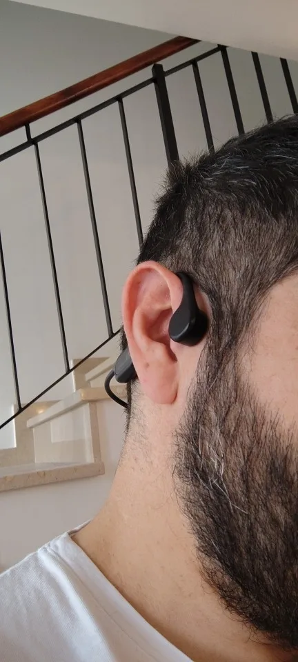 Excellent sound, it's just as described, it can't be heard from outside, there's no need to insert it into the ears, it's bone conduction, and it has very good bass. However, I was disappointed with the microphone; they can't hear me well, so I can't use it for calls.